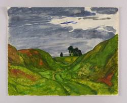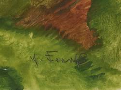 Rechts unten in Bleistift signiert: ″E. Fraaß″. Verso von fremder Hand bezeichnet: ″Landschaft bei Gostritz, um 1929″. – Rückseitig in den oberen Blattecken leichter Papierverlust von ehemaliger Montierung. Durchgehend leichte Knickspuren. Insgesamt aber doch guter Zustand.