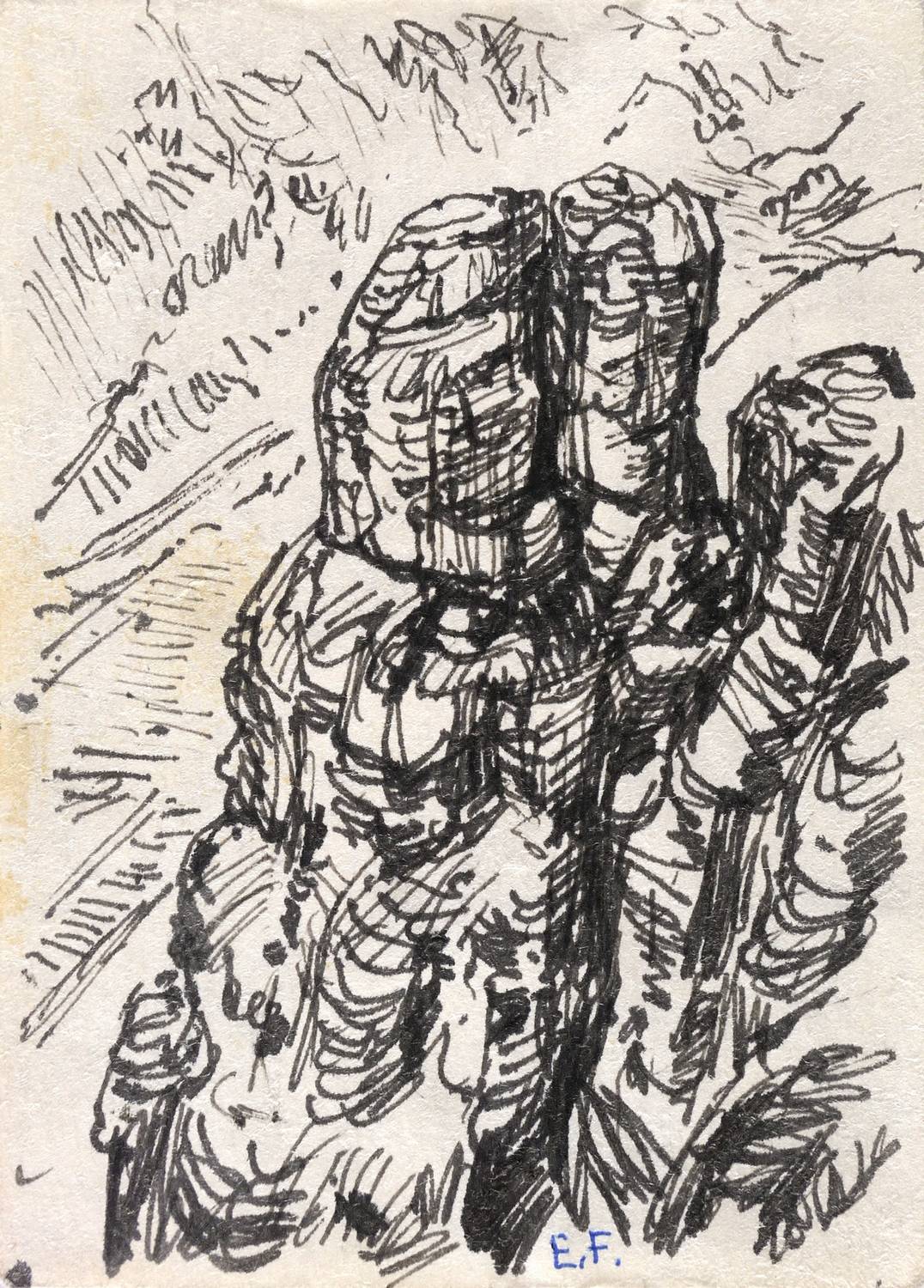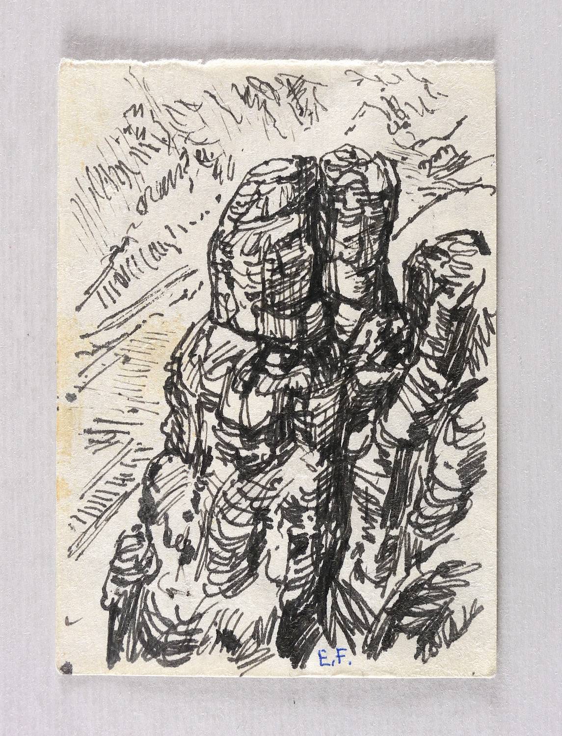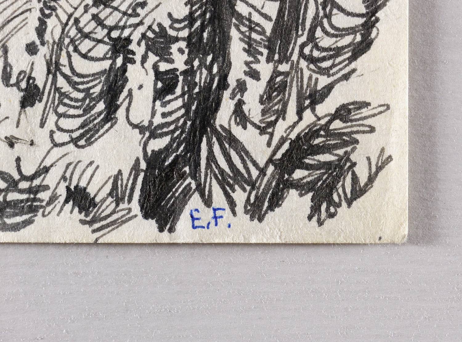 Rechts unten in Kugelschreiber signiert: ″E.F.″ – Guter Zustand.