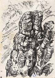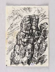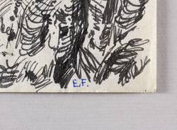 1950-1960. Zeichnung / Faserstift, in Schwarz, auf gelblichem Velin. – Originale Künstlergrafik, von Erich Fraaß. – Unikat. – 14,0 x 10,0 cm (Darstellung / Blatt).