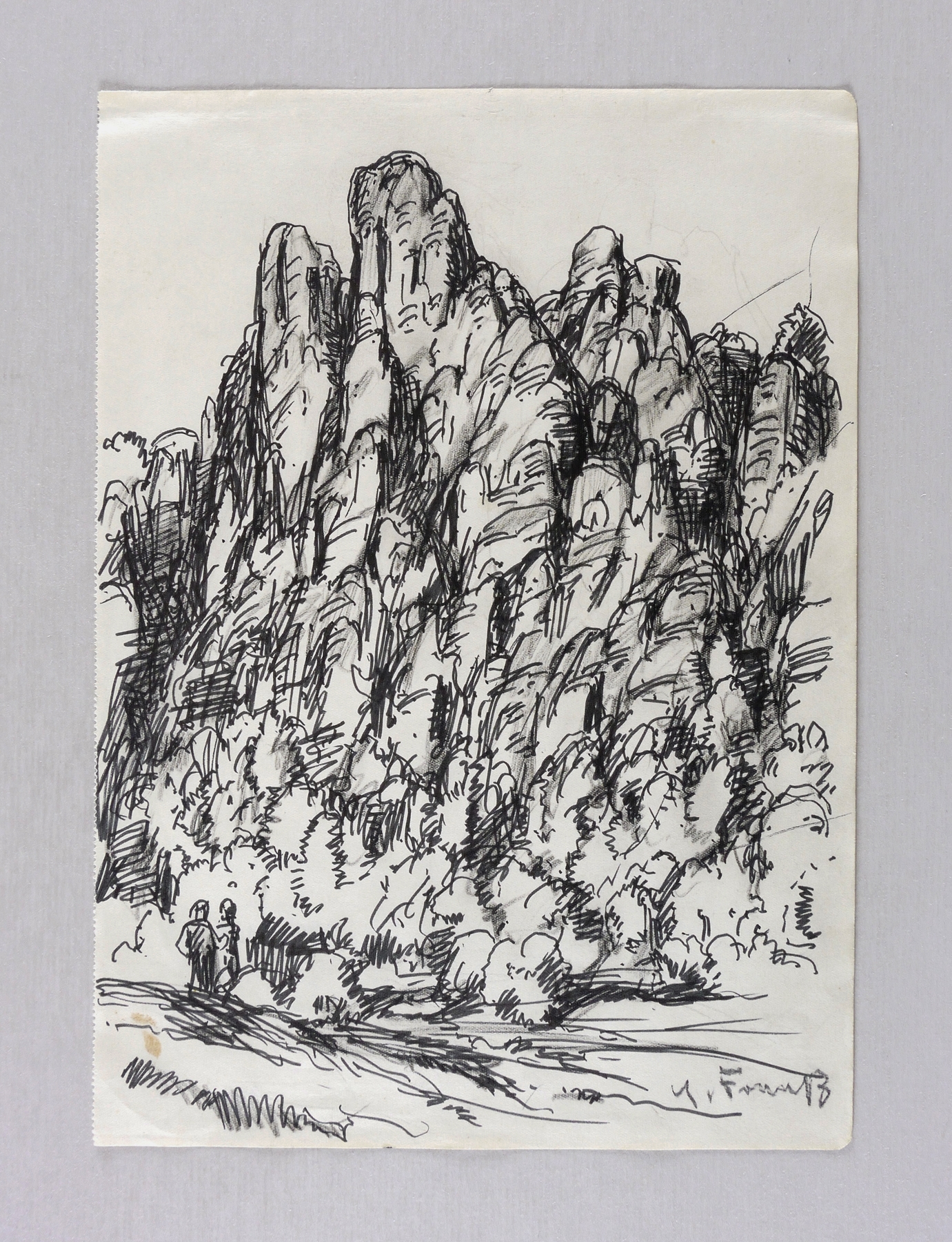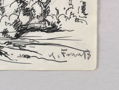 1954. Zeichnung / Graphit & Faserstift, in Schwarz, auf leichtem hellem Velin. – Originale Künstlergrafik, von Erich Fraaß. – Unikat. – 27,0 x 19,5 cm (Darstellung / Blatt).