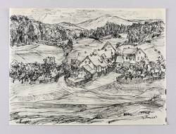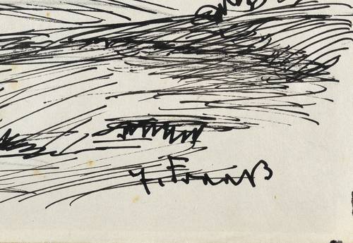 1952. Zeichnung / Federzeichnung, in schwarzer Tusche, auf leichtem hellgelbem Velin. – Originale Künstlergrafik, von Erich Fraaß. – Unikat. – 29,7 x 39,7 cm (Darstellung / Blatt).