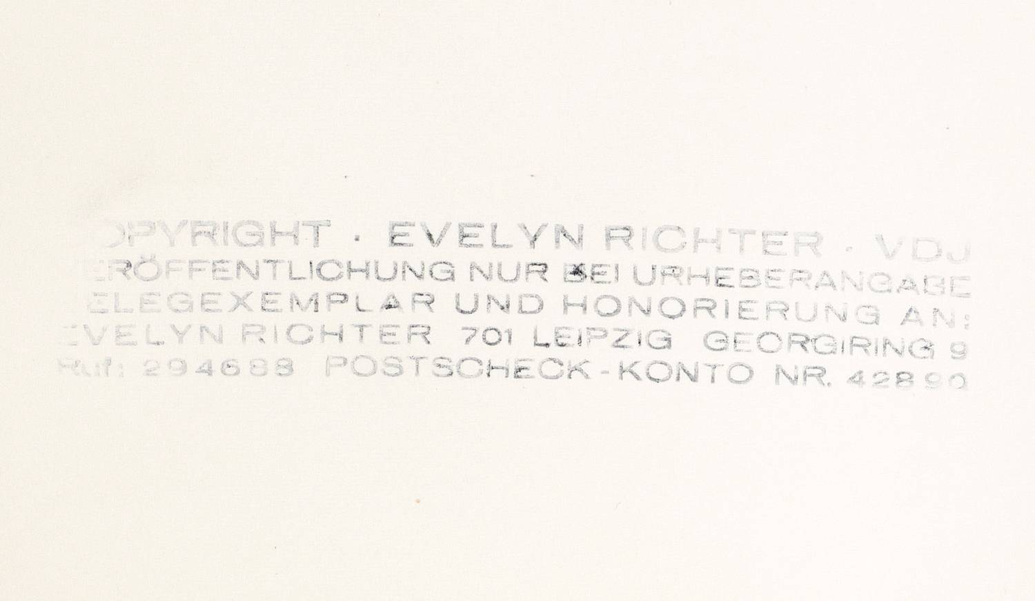 Verso Atelierstempel Evelyn Richter. Dazu in Kugelschreiber bezeichnet: ″Otto Dix 1964″. – Originalabzug (Vintage print), der nach der Aufnahme von der Künstlerin selbst hergestellt wurde. – Fotopapier leicht gewellt. Insgesamt guter Zustand.