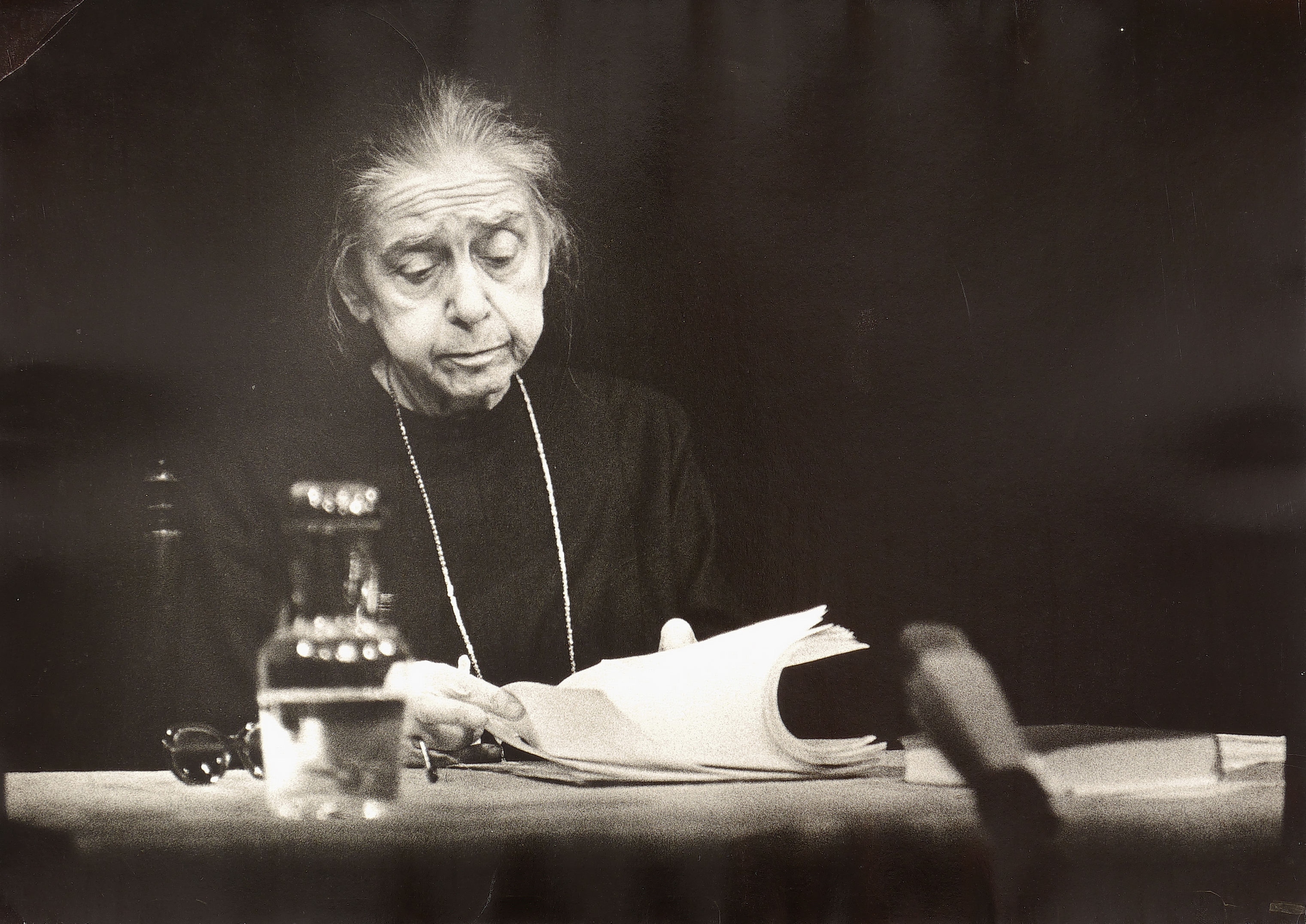 Therese Giehse (1898 München - 1975 München). Geborene Therese Gift. Deutsche Schauspielerin. 1937-66 Engagement am Schauspielhaus Zürich. Spielte 1941 in der Uraufführung von Bertolt Brechts Mutter Courage. 1949-52 Mitglied am Berliner Ensemble und 1949-73 an den Münchner Kammerspielen. Bedeutende Interpretin der Werke von Brecht. Zu ihrem Rezitations-Programm "Ein Bertolt-Brecht-Abend" erschienen Schallplatten in BRD und DDR.