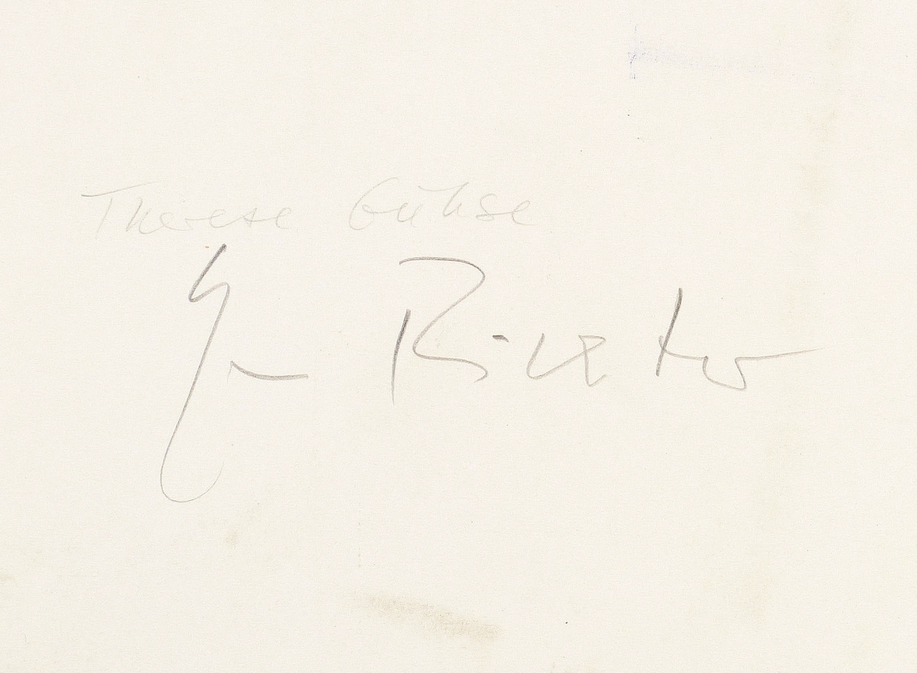 Verso alt in Faserstift bezeichnet. Dazu in Bleistift signiert. – Originalabzug (Vintage print), der nach der Aufnahme von der Künstlerin selbst hergestellt wurde. - Die Aufnahme entstand anlässlich einer Lesung in Ost-Berlin. – Fotopapier im Rand etwas gewellt. Links oben Eselsohr. Insgesamt mäßig guter Zustand.
