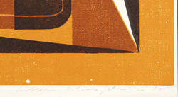 1981. Farblinolschnitt, von 3 Platten, auf Achat-Bütten. – Originale Künstlergrafik, von Helmut Gebhardt. – Auflage Exemplar Nr. 114/200. – 36,2 x 36,0 cm (Darstellung), 39,5 x 36,5 cm (Blatt).