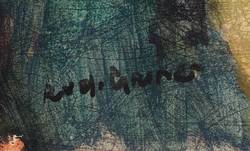 Rudi Gruner (1909 Chemnitz - 1984 Karl-Marx-Stadt). Deutscher Maler, Zeichner und Illustrator. 1924-28 Ausbildung zum Musterzeichner an der Fachschule für Textilindustrie Chemnitz. 1932 Heirat mit Charlotte Pannicke. 1932-37 arbeitslos, gelegentlich Aushilfe in einer Drogerie. Ab 1937 Wohnung und Atelier in der Bernsdorfer Straße in Chemnitz. 1939-44 als Werbegrafiker tätig (v.a. Kinoplakate). 1944/45 Kriegsdienst als Soldat. Seitdem freischaffend in Chemnitz tätig. Enger Kontakt zur Künstlergruppe Chemnitz mit Martha Schrag, Georg Gelbke und anderen. 1950 Mitglied Verband Bildender Künstler Deutschlands. In den 1950er und '60er Jahren zahlreiche Illustrationen zur Weltliteratur (z.B. "Das Leben des Lazarillo vom Tormes", Leipzig: Reclam 1961). 1984 Hans-Grundig-Medaille. Ausstellungen: 1939 und '43 Beteiligungen Chemnitzer Kunsthütte, 1985 Galerie Oben in Karl-Marx-Stadt, 1997 Beteiligung "Die großen Alten 2" Neue Sächsische Galerie (mit Wilhelm Rudolph, Hermann Glöckner und Otto Müller-Eibenstock), 1999 Galerie Borssenanger Chemnitz, 2009 Retrospektive zum 100. Geburtstag Verein Kunst für Chemnitz.
