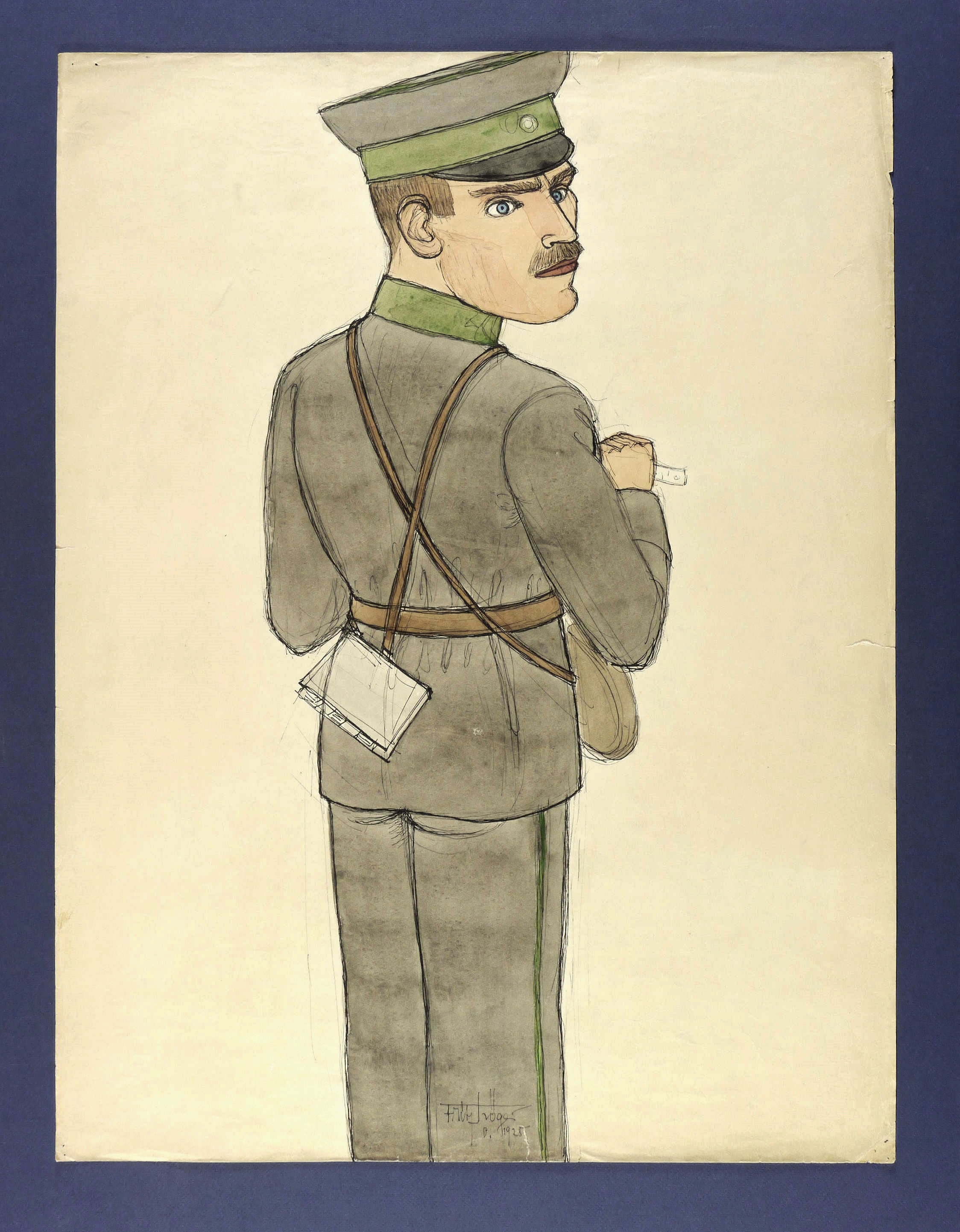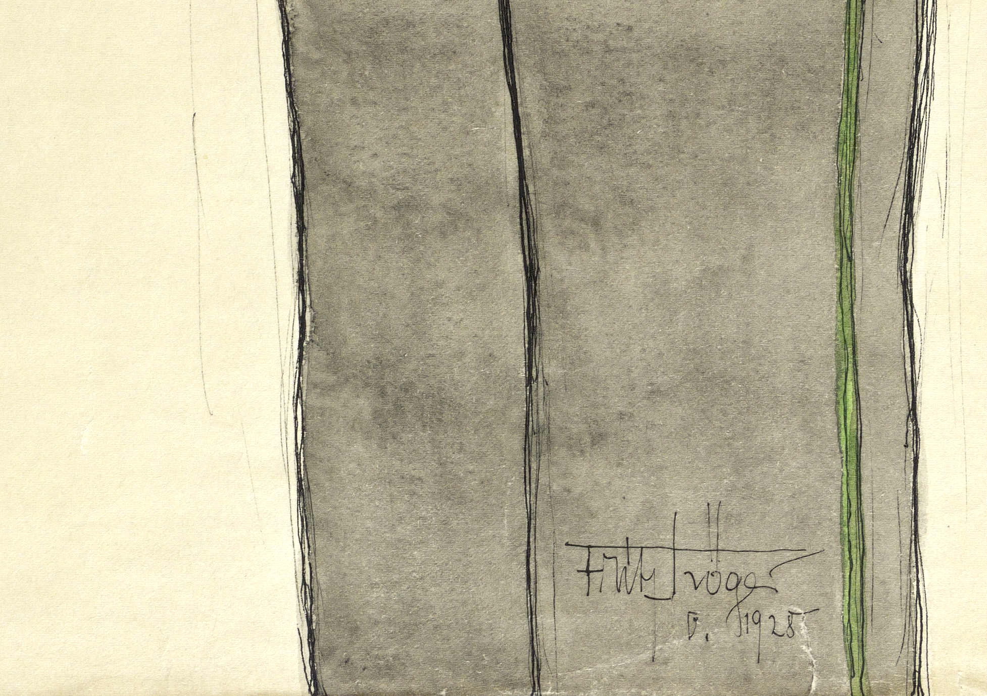 1928. Mischtechnik / Aquarell & Feder, auf gelblichem Papier. – Originale Künstlergrafik, von Fritz Tröger. – Unikat. – 66,0 x 25,5 cm (Darstellung), 66 x 50 cm (Blatt).