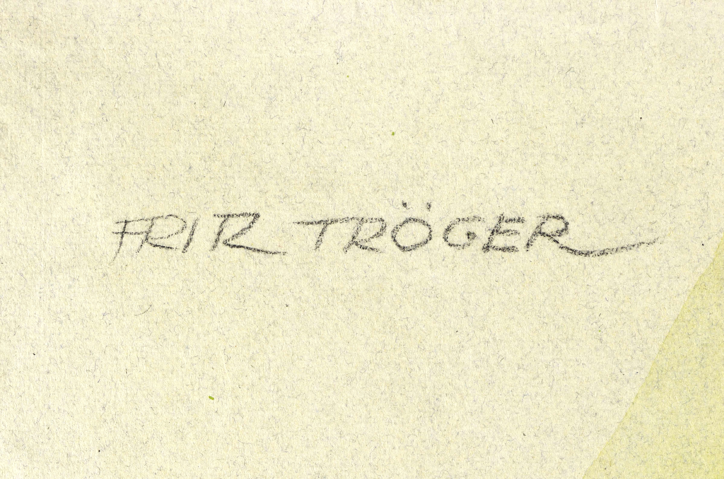 Fritz Tröger (1894 Dresden - 1978 Dresden). Deutscher Maler und Grafiker. Namhafter Vertreter der Neuen Sachlichkeit. 1914-18 Studium an der Kunstgewerbeschule in Dresden bei Paul Rößler und Margarete Junge. 1918-25 Studium an der Dresdner Akademie bei Max Feldbauer, Otto Gussmann, Otto Hettner und Georg Lührig. Ab 1925 freischaffender Maler in Dresden. Danach Studienreisen nach Italien, Frankreich, Spanien, Portugal, Österreich und nach Böhmen. 1928-30 Lehrer für Modezeichnen an der Kunstschule Guido Richter, 1929-35 Lehrer an der Heeres-Handwerker-Schule Dresden. 1929-33 Versuche mit keramischer Wandmalerei bei Teichert in Meißen. Gründungsmitglied der "Dresdner Sezession 1932". 1936 Rückzug in das Landatelier in Laske bei Kamenz. 1943-45 Ausstellungsverbot. 1947 Mitglied der Dresdner Künstlergemeinschaft "Das Ufer". 1950er und 1960er Jahre verstärkt Arbeit in landwirtschaftlichen und industriellen Betrieben sowie im Tagebau. 1954 Sonderausstellung im Albertinum in Dresden. 1955 und '61 Paris-Reisen. Tröger schuf Bildnisse, Landschaften und Industriedarstellungen in Öl, Pastell und Keramik.