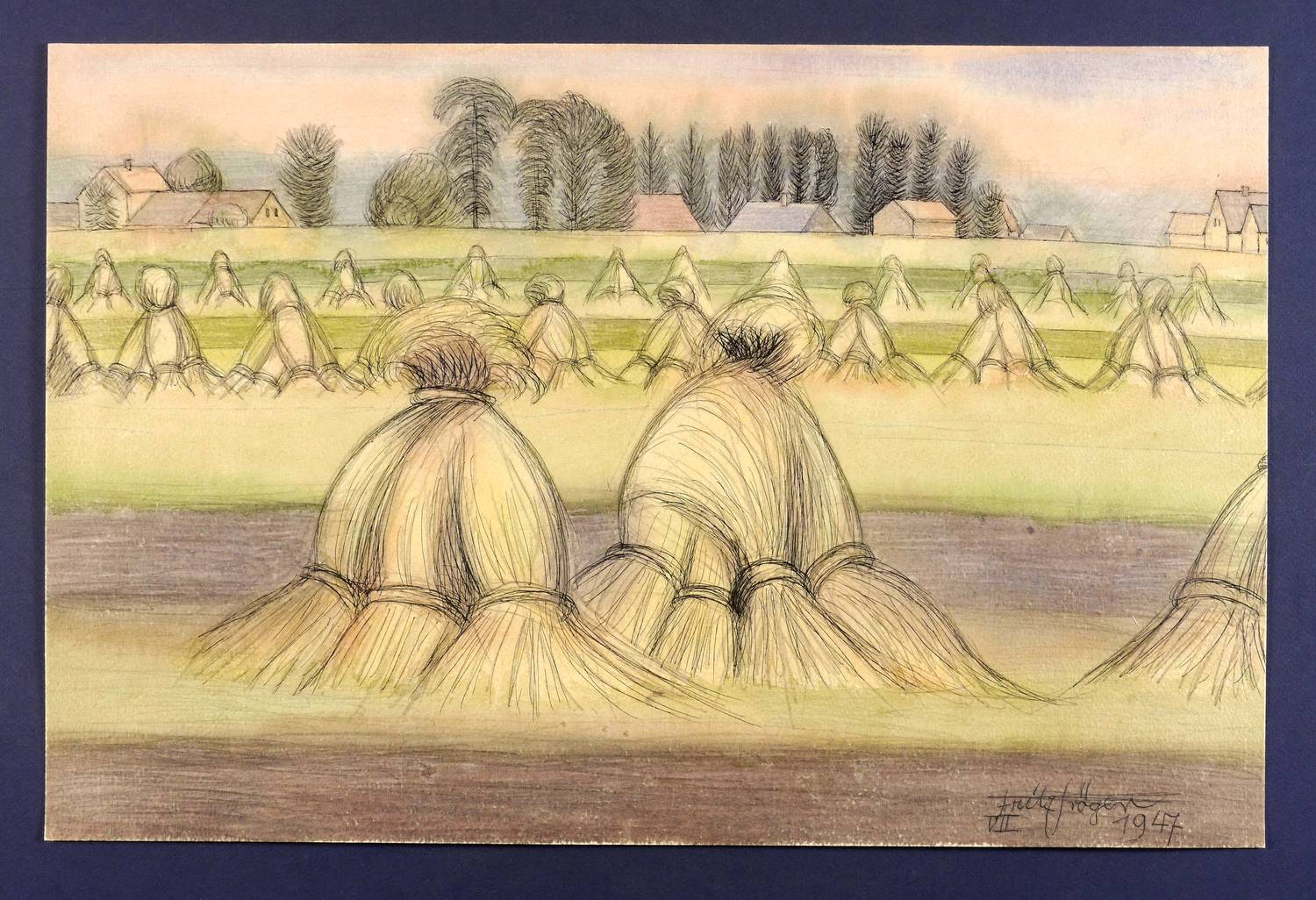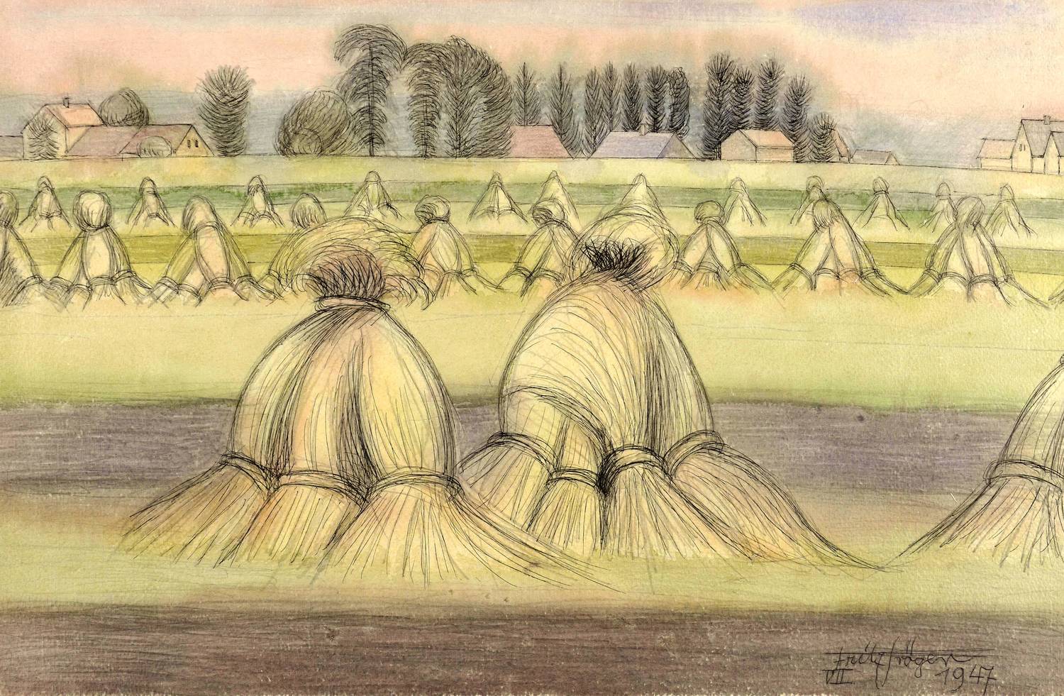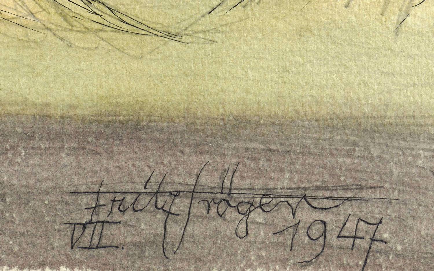 1947. Mischtechnik / Tusche & Aquarell, über Graphit, auf weißem Arches-France-Büttenkarton. – Originale Künstlergrafik, von Fritz Tröger. – Unikat. – 36,8 x 56,1 cm (Darstellung / Blatt).