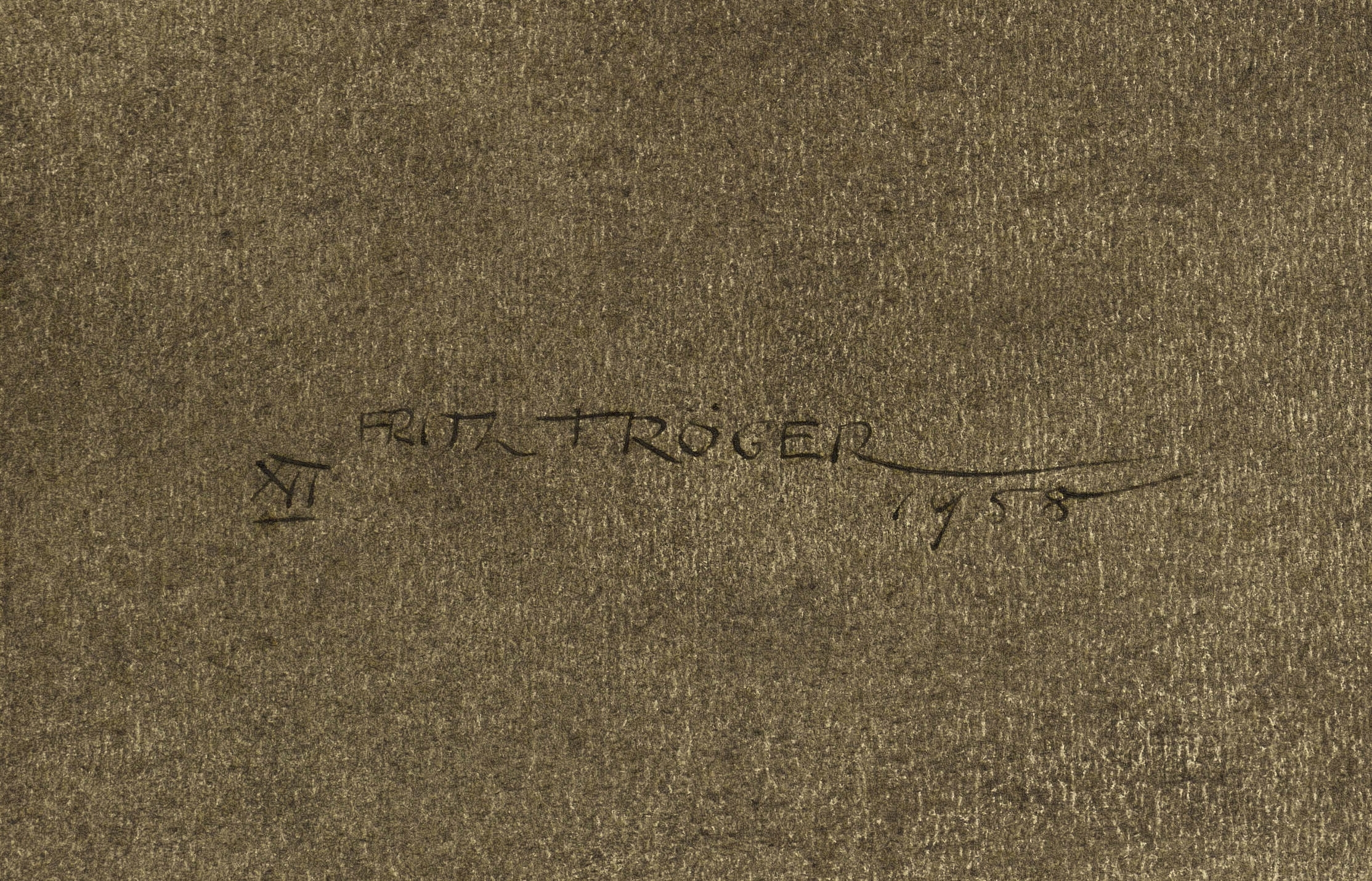 Fritz Tröger (1894 Dresden - 1978 Dresden). Deutscher Maler und Grafiker. Namhafter Vertreter der Neuen Sachlichkeit. 1914-18 Studium an der Kunstgewerbeschule in Dresden bei Paul Rößler und Margarete Junge. 1918-25 Studium an der Dresdner Akademie bei Max Feldbauer, Otto Gussmann, Otto Hettner und Georg Lührig. Ab 1925 freischaffender Maler in Dresden. Danach Studienreisen nach Italien, Frankreich, Spanien, Portugal, Österreich und nach Böhmen. 1928-30 Lehrer für Modezeichnen an der Kunstschule Guido Richter, 1929-35 Lehrer an der Heeres-Handwerker-Schule Dresden. 1929-33 Versuche mit keramischer Wandmalerei bei Teichert in Meißen. Gründungsmitglied der "Dresdner Sezession 1932". 1936 Rückzug in das Landatelier in Laske bei Kamenz. 1943-45 Ausstellungsverbot. 1947 Mitglied der Dresdner Künstlergemeinschaft "Das Ufer". 1950er und 1960er Jahre verstärkt Arbeit in landwirtschaftlichen und industriellen Betrieben sowie im Tagebau. 1954 Sonderausstellung im Albertinum in Dresden. 1955 und '61 Paris-Reisen. Tröger schuf Bildnisse, Landschaften und Industriedarstellungen in Öl, Pastell und Keramik.