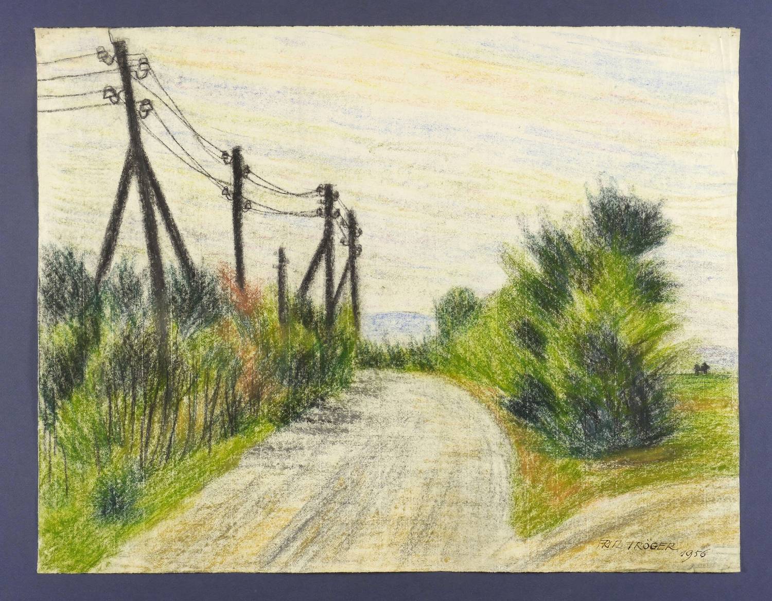 1956. Mischtechnik / Ölkreide, auf leichtem hellgelbem Hahnemühle-Bütten. – Originale Künstlergrafik, von Fritz Tröger. – Unikat. – 48,5 x 62,2 cm (Darstellung / Blatt).