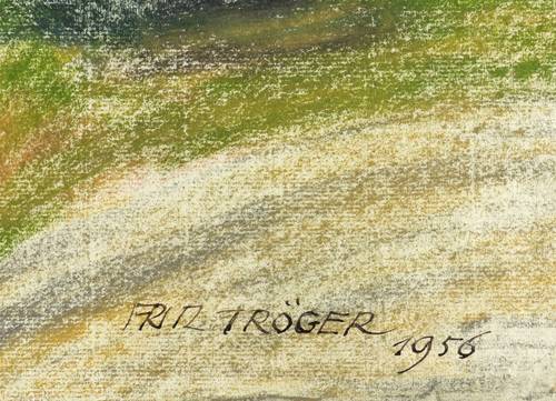 Fritz Tröger (1894 Dresden - 1978 Dresden). Deutscher Maler und Grafiker. Namhafter Vertreter der Neuen Sachlichkeit. 1914-18 Studium an der Kunstgewerbeschule in Dresden bei Paul Rößler und Margarete Junge. 1918-25 Studium an der Dresdner Akademie bei Max Feldbauer, Otto Gussmann, Otto Hettner und Georg Lührig. Ab 1925 freischaffender Maler in Dresden. Danach Studienreisen nach Italien, Frankreich, Spanien, Portugal, Österreich und nach Böhmen. 1928-30 Lehrer für Modezeichnen an der Kunstschule Guido Richter, 1929-35 Lehrer an der Heeres-Handwerker-Schule Dresden. 1929-33 Versuche mit keramischer Wandmalerei bei Teichert in Meißen. Gründungsmitglied der "Dresdner Sezession 1932". 1936 Rückzug in das Landatelier in Laske bei Kamenz. 1943-45 Ausstellungsverbot. 1947 Mitglied der Dresdner Künstlergemeinschaft "Das Ufer". 1950er und 1960er Jahre verstärkt Arbeit in landwirtschaftlichen und industriellen Betrieben sowie im Tagebau. 1954 Sonderausstellung im Albertinum in Dresden. 1955 und '61 Paris-Reisen. Tröger schuf Bildnisse, Landschaften und Industriedarstellungen in Öl, Pastell und Keramik.