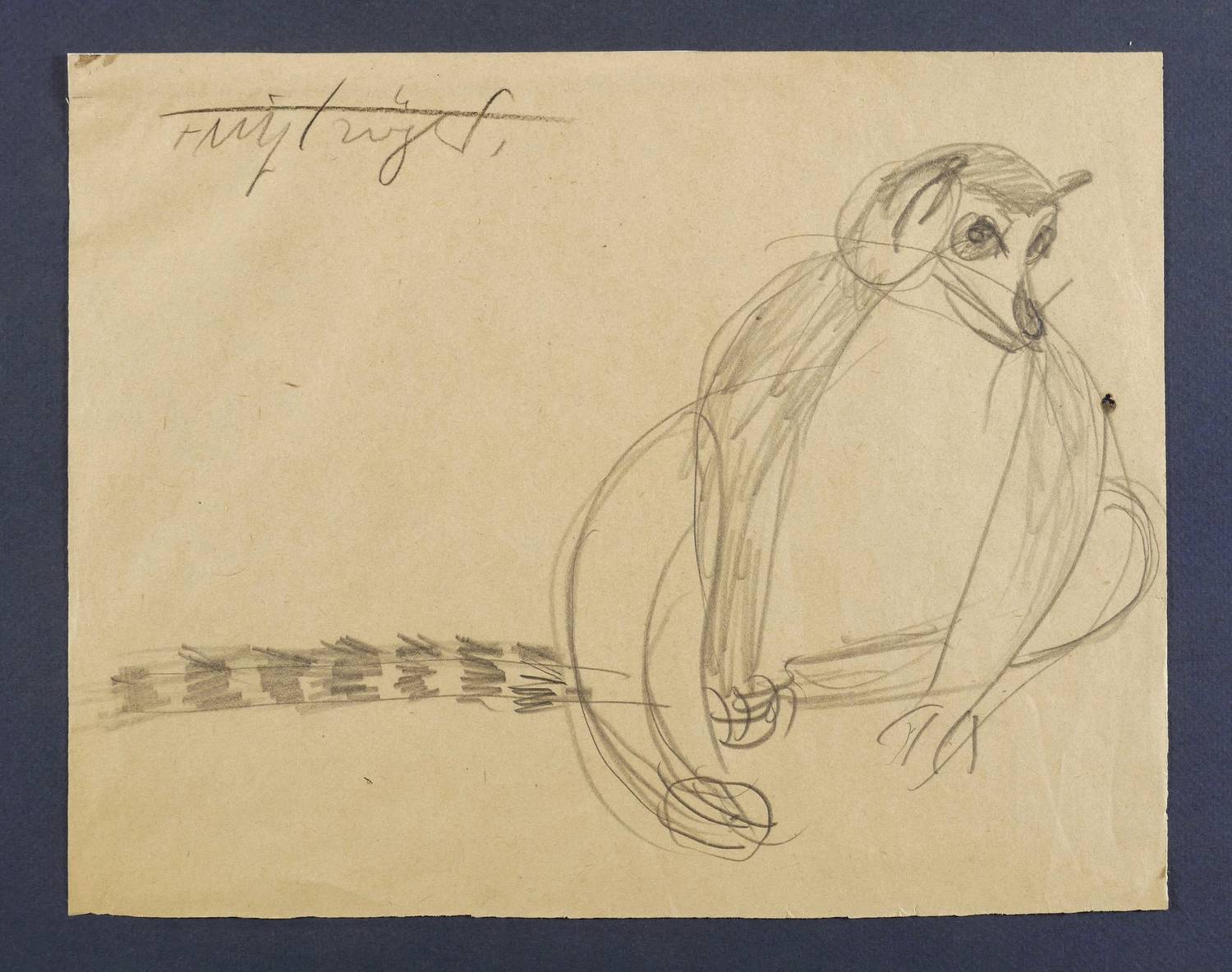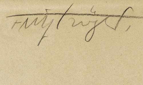Links oben in Bleistift signiert. Verso in Bleistift Jahr und Qualitätssigel: ″XXX″. Dazu Sammlerstempel. – Sehr frühe Arbeit aus der Studienzeit Trögers. - Verso weitere Skizze zum Katta. – Gering knickspurig. Oberer Rand mit Papierstreifen hinterlegt. Rechts im Rand kleines Löchlein. Insgesamt mäßig guter Zustand.