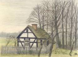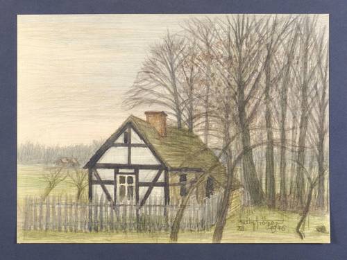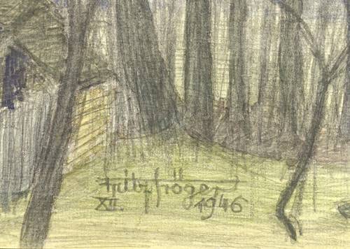 1946. Mischtechnik / Aquarell & Graphit, auf hellgelbem Torchon-Bütten. – Originale Künstlergrafik, von Fritz Tröger. – Unikat. – 24,7 x 33,6 cm (Darstellung / Blatt).