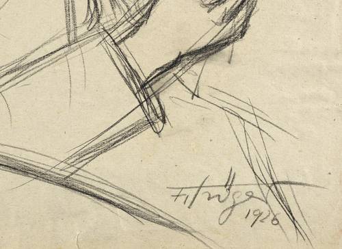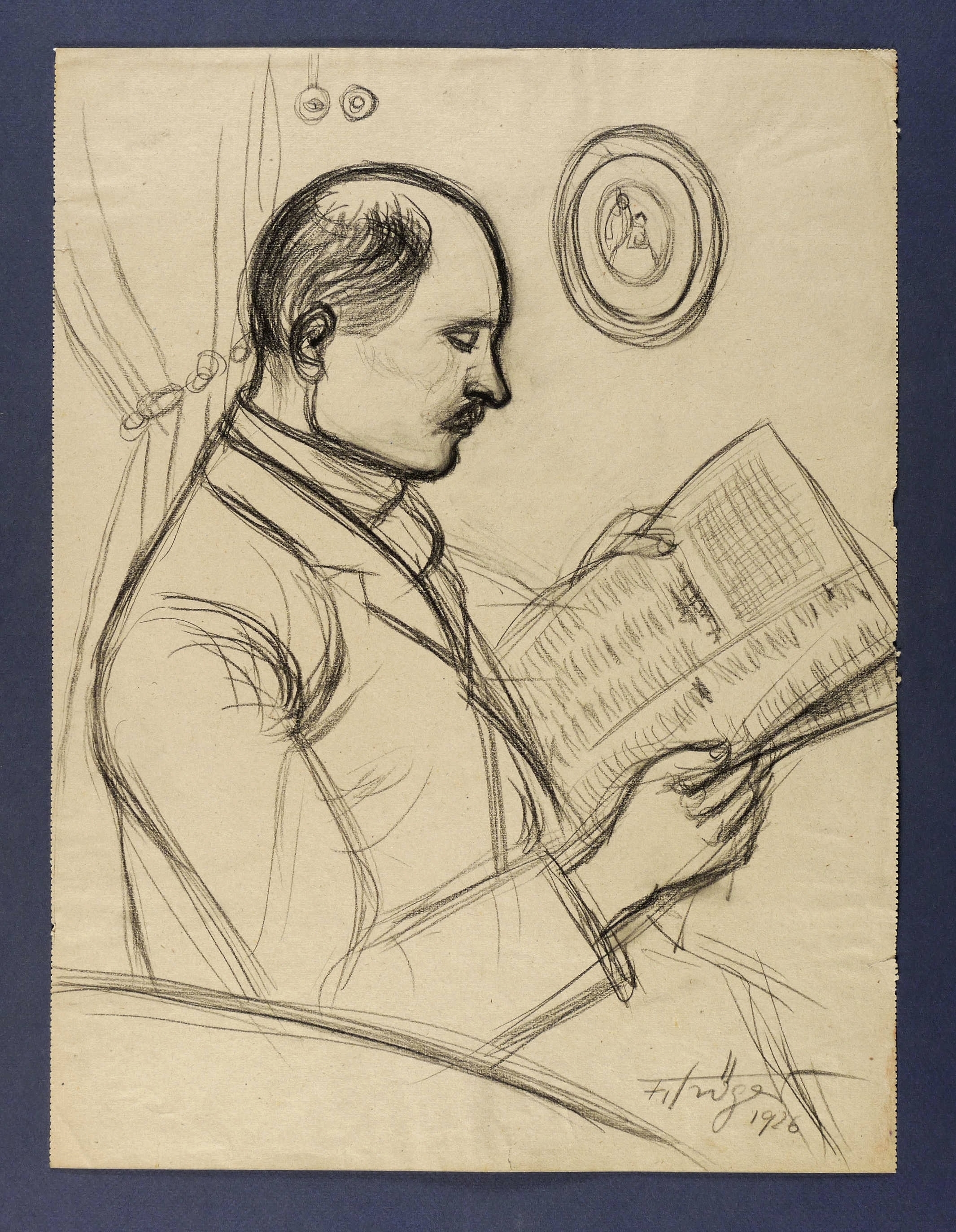 1926. Zeichnung / Kreidezeichnung, in Schwarz, auf grauem Papier. – Originale Künstlergrafik, von Fritz Tröger. – Unikat. – 42,9 x 32,4 cm (Darstellung / Blatt).