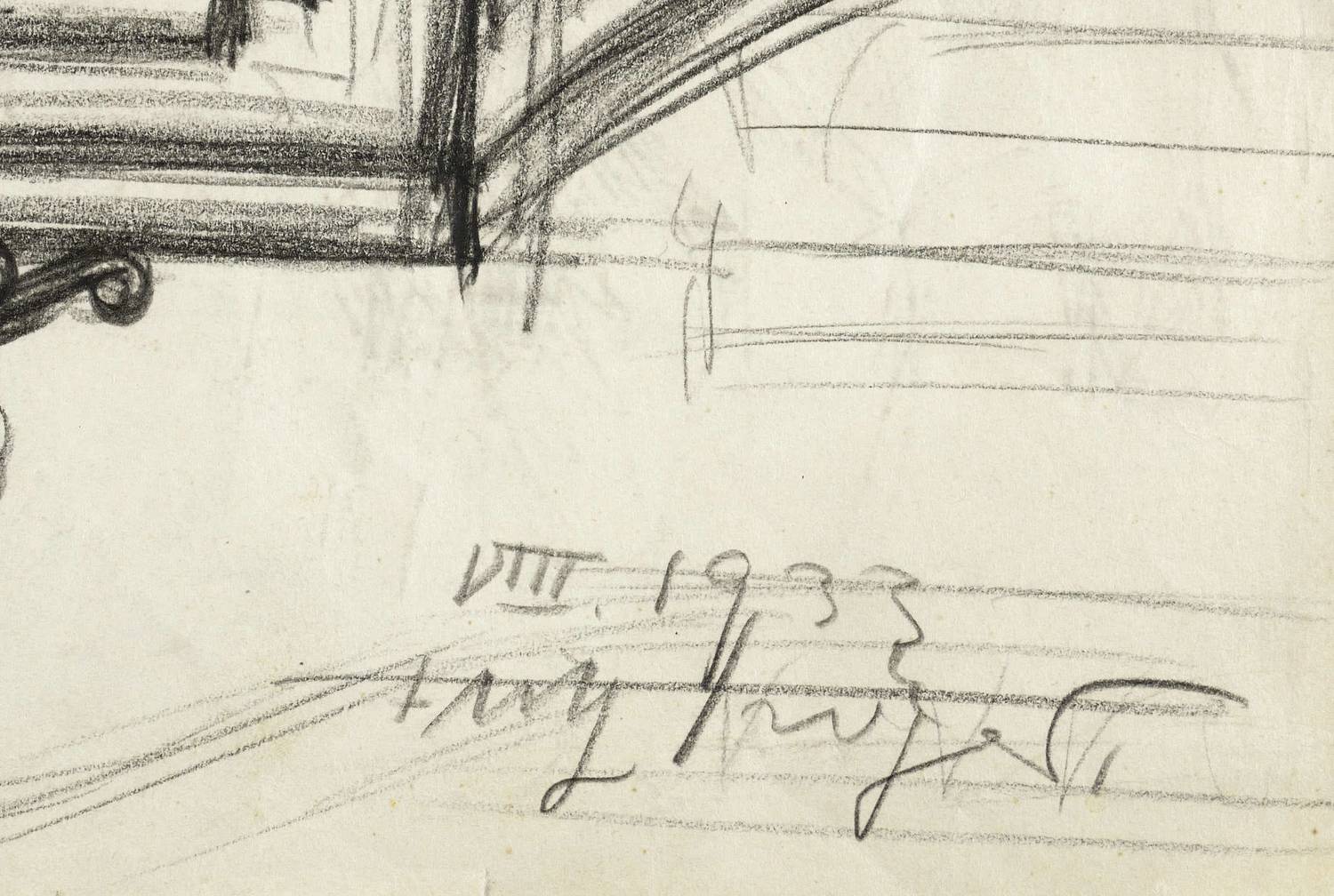 1933. Zeichnung / Graphitzeichnung, auf hellgelbem Papier. – Originale Künstlergrafik, von Fritz Tröger. – Unikat. – 31,5 x 47,9 cm (Darstellung / Blatt).