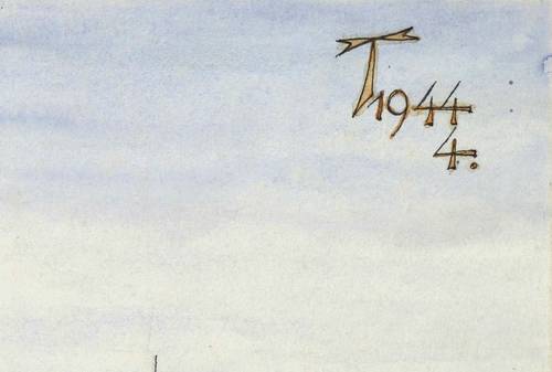 Rechts oben in schwarzer Feder monogrammiert und datiert: ″T 1944 4″. Verso Nachlass-Stempel. Diverse Bezeichnungen. In Bleistift Qualitätssigel: ″XXX″. – Vom Künstler auf Trägerkarton gesetzt. Sehr guter Zustand.