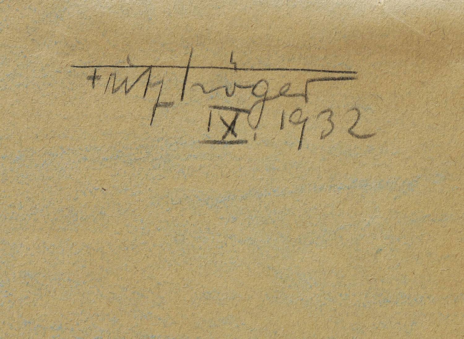 1932. Zeichnung / Ölkreide, auf braunem Zeichenpapier. – Originale Künstlergrafik, von Fritz Tröger. – Unikat. – 50,1 x 65,3 cm (Darstellung / Blatt).