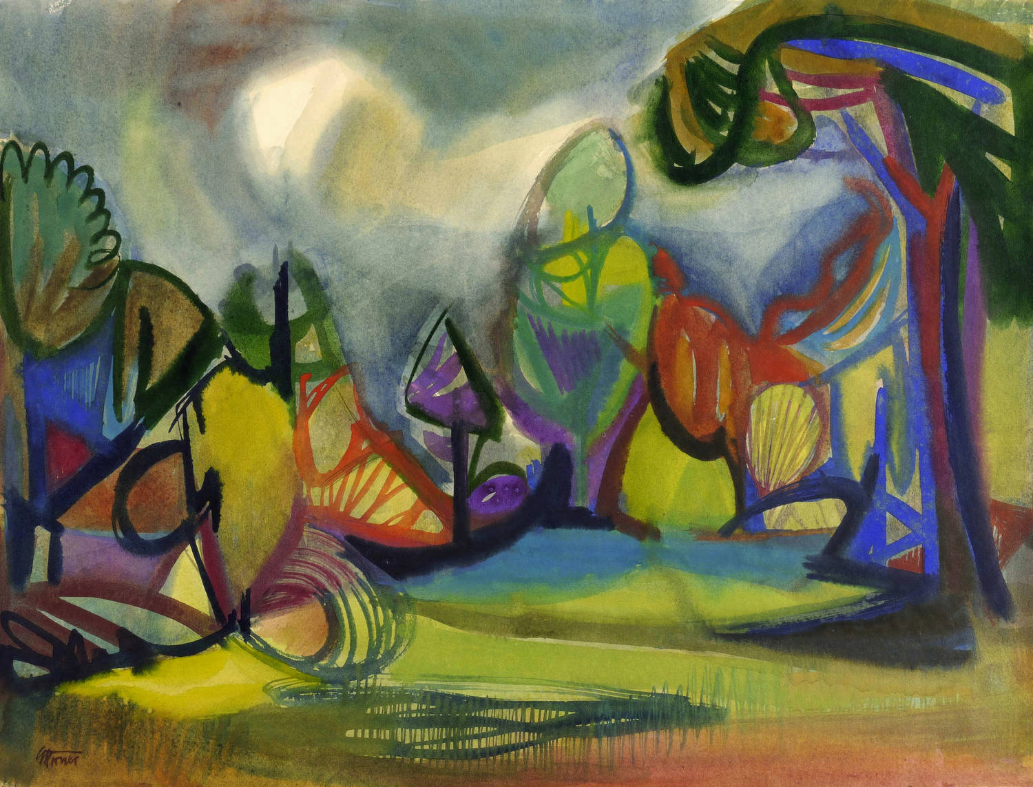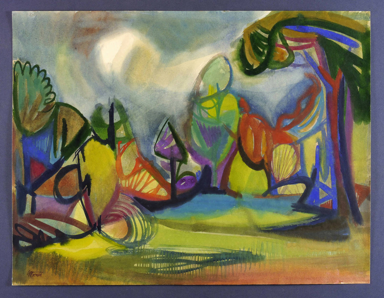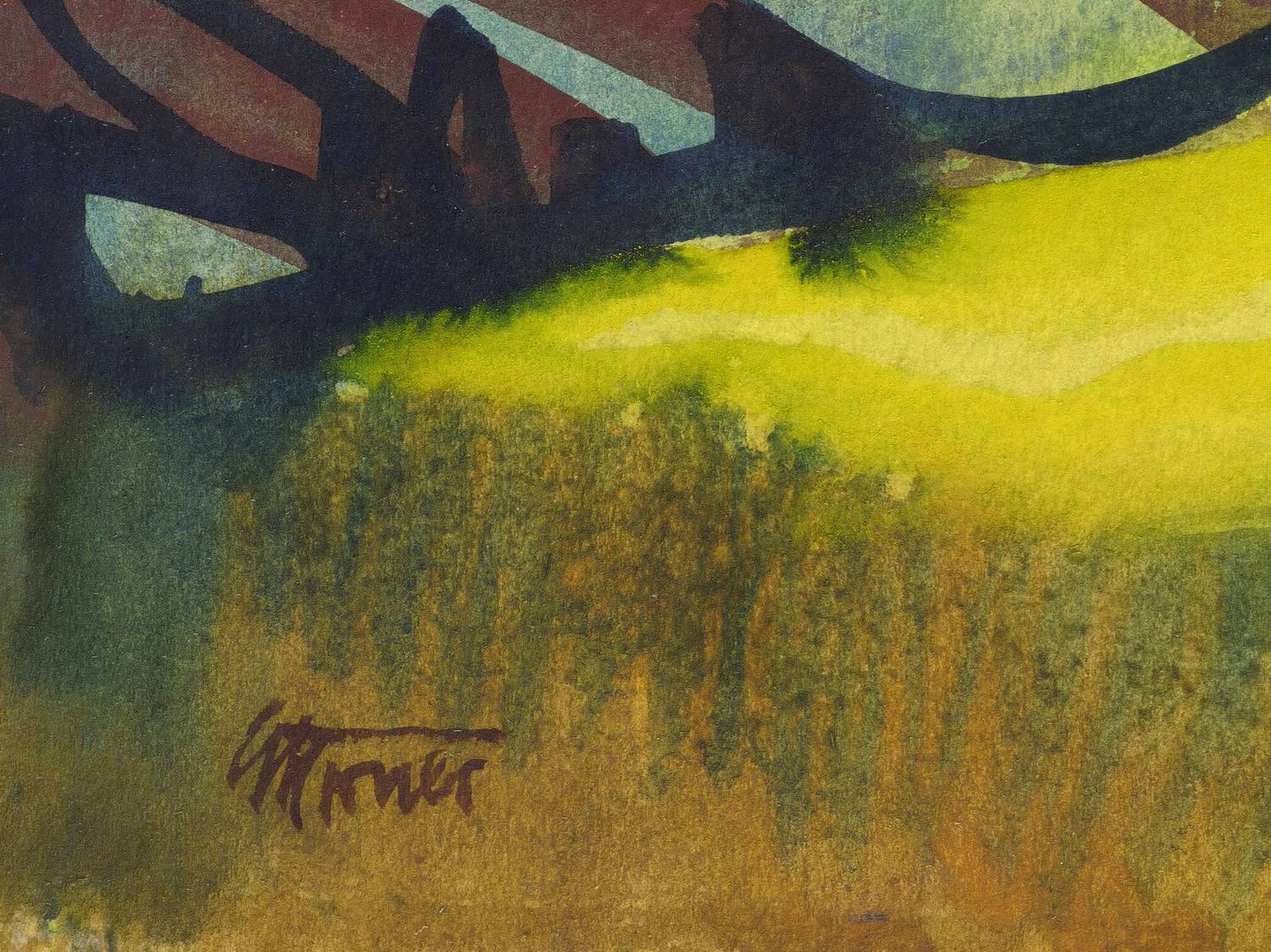 Um 1960. Aquarell, auf hellgelbem Büttenkarton. – Originale Künstlergrafik, von Gottfried Körner. – Unikat. – 48,5 x 63,6 cm (Darstellung / Blatt).
