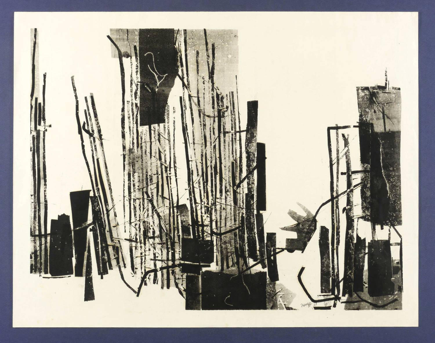 1967. Farbmonotypie, in Hellgrau & Schwarz, auf hellgelbem Büttenpapier. – Originale Künstlergrafik, von Willy Wolff. – Unikat. – 43,8 x 58,0 cm (Darstellung / Druckbild), 49 x 63 cm (Blatt).