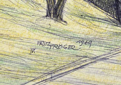 Rechts unten in Kugelschreiber signiert und datiert: ″Fritz Tröger 1969 IV.″ Verso eigenhändiges Quallitätssigel: ″XXXO″. Dazu ausführlich bezeichnet und mit Notizen zu Farbgebung und Licht versehen. – Sehr guter Zustand.