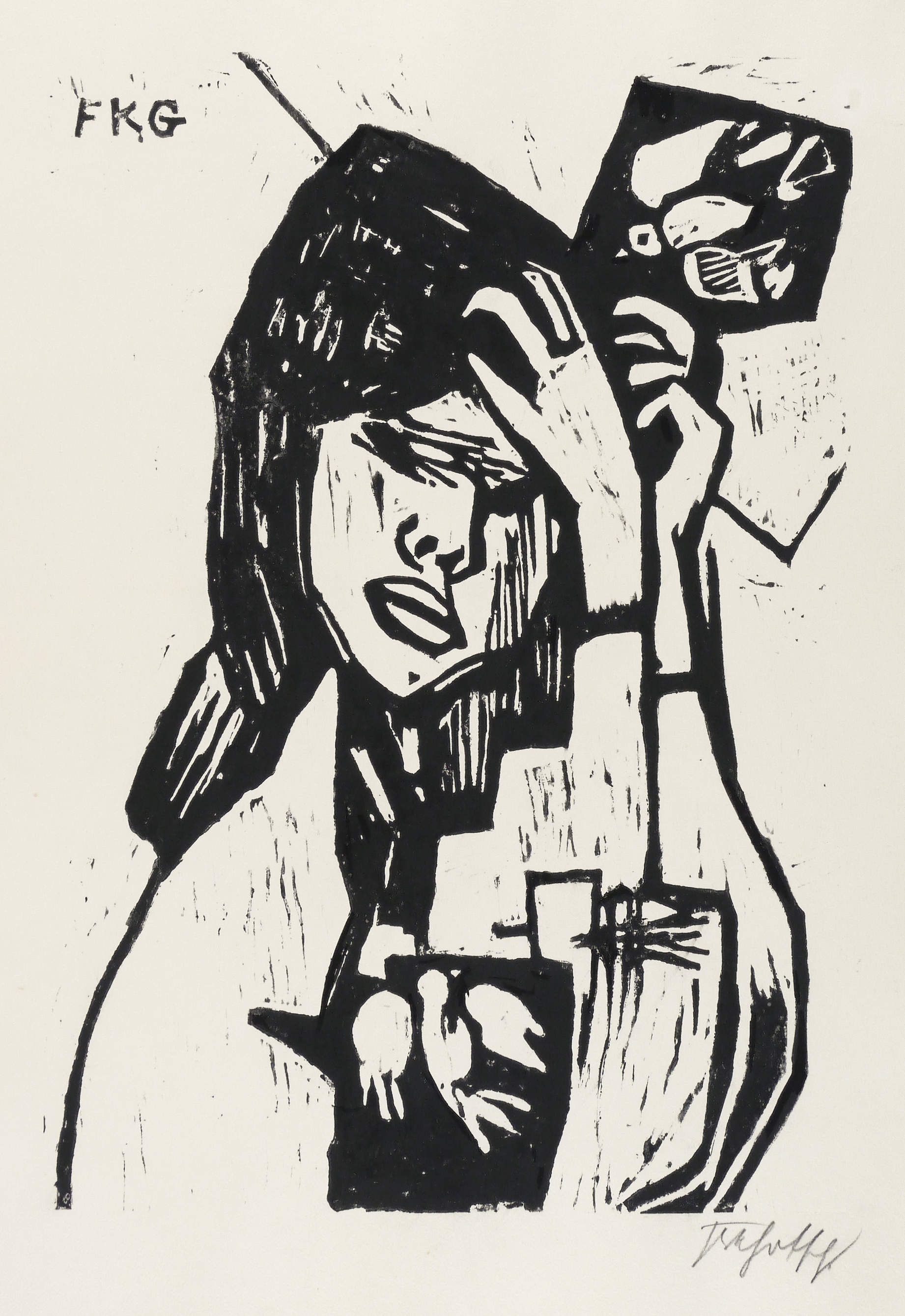 1954. Holzschnitt, in Schwarz, auf hellgelbem Velin. – Originale Künstlergrafik, von Friedrich Karl Gotsch. – 50,5 x 35,0 cm (Darstellung / Druckstock), 65 x 50 cm (Blatt).