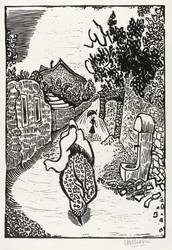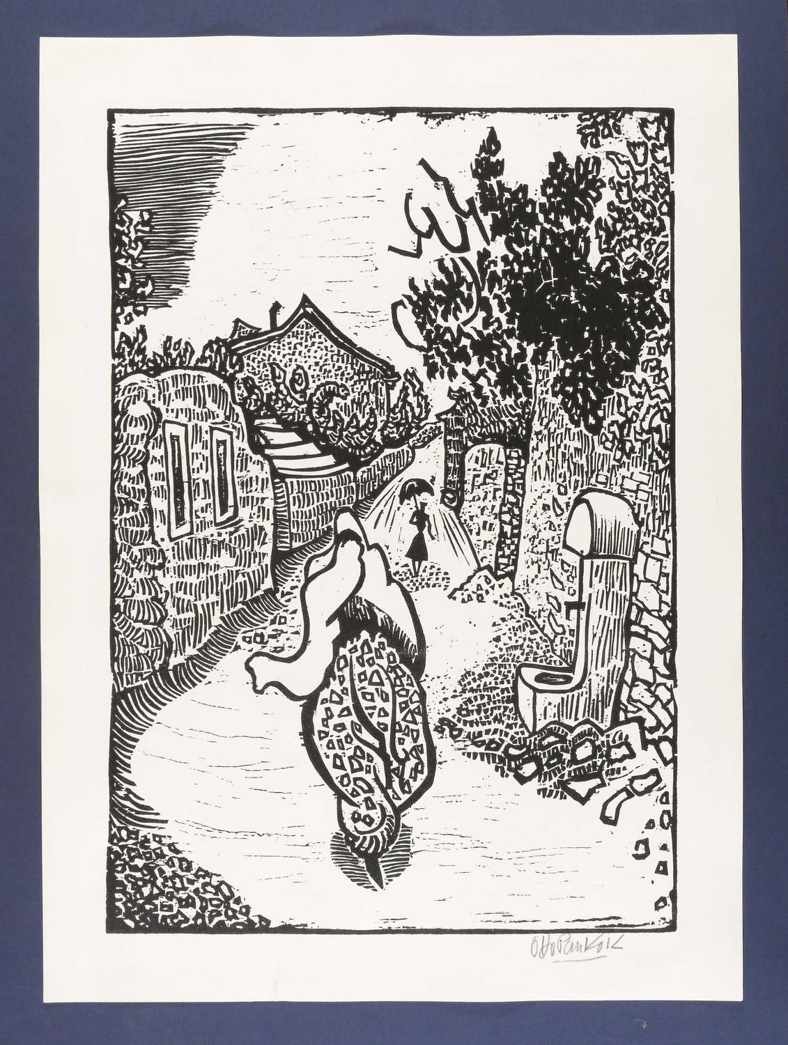 1957. Holzschnitt, in Schwarz, auf hellgelbem Velinkarton. – Originale Künstlergrafik, von Otto Pankok. – Auflage 500 Exemplare. – 60,8 x 41,7 cm (Darstellung / Druckstock), 71 x 52 cm (Blatt).