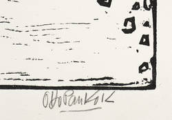 Otto Pankok (1893 Mülheim an der Ruhr - 1966 Wesel). Deutscher Maler, Grafiker und Bildhauer. 1913 Studium an der Kunstakademie Düsseldorf und der Großherzoglich-Sächsischen Hochschule für bildende Kunst in Weimar. Nach Abbruch des Studiums ging er mit seinem Freund Carl Lohse nach Dötlingen. 1914-17 als Soldat im Ersten Weltkrieg. Ab 1919 in Düsseldorf, wo er der Künstlergruppe "Junges Rheinland" beitrat, zu der auch Otto Dix zählte. In dieser Zeit war er ebenfalls im rebellischen Künstlerkreis um Johanna Ey aktiv. Reisen in die Niederlande, Italien, Frankreich und Spanien. Auf den Nationalsozialismus reagierte er mit innerer Emigration. 1937 Beschlagnahmung einiger seiner Werke und Diffamierung als "Entarteter Künstler". Nach Kriegsende Berufung zum Professor an der Akademie Düsseldorf. Bis 1958 unterrichtete er u.a. Günter Grass, Herbert Zangs und Werner Persy.