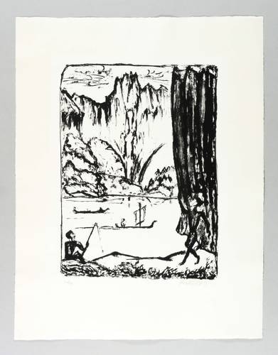 1965. Lithografie / Pinsellithografie, in Schwarz, auf hellchamois BFK-Rives-Velin. – Originale Künstlergrafik, von Erich Heckel. – Auflage Exemplar Nr. 30/40. – 43,8 x 32,1 cm (Darstellung), 66 x 50 cm (Blatt).