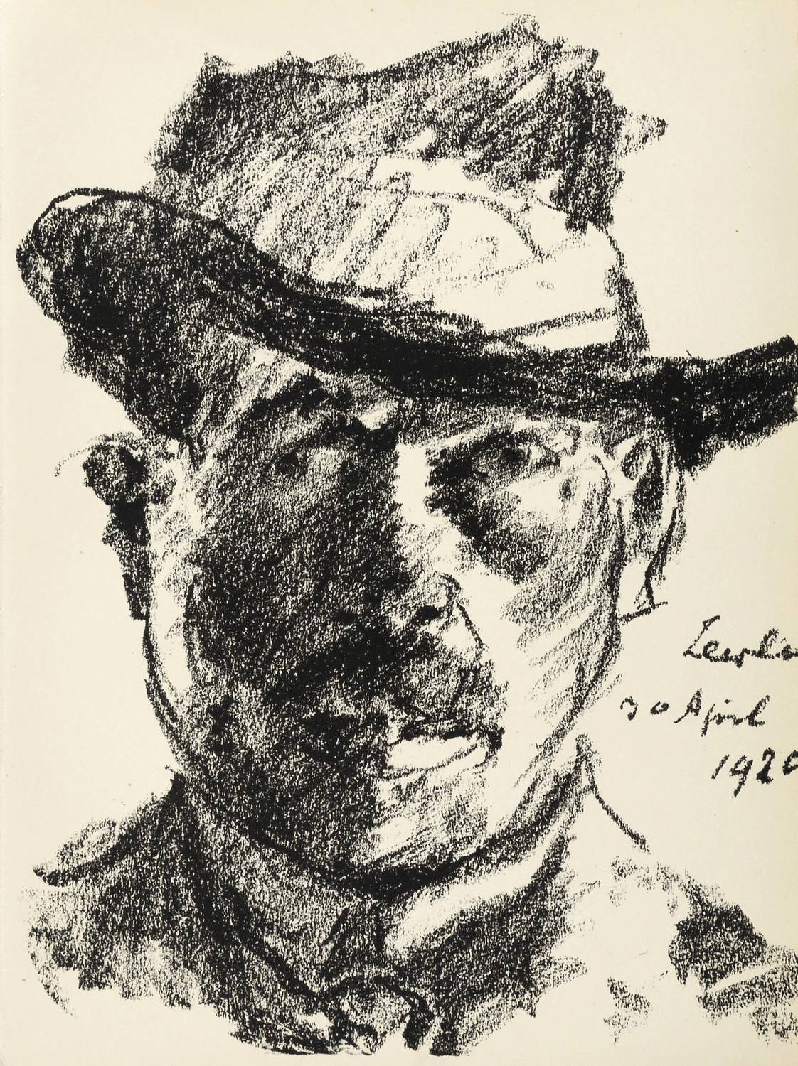 Schwarz L 409. Söhn HDO 108-1. – Aus: Kurt Pfister, Deutsche Graphiker der Gegenwart (Leipzig: Klinkhardt & Biermann 1920). – Nicht handsigniert. Im Stein rechts unten datiert: ″Berlin 30 April 1920″. Verso typografisch bezeichnet: ″CORINTH: Selbstbildnis. Originallithographie″. Dazu in Bleistift nummeriert. – Erschienen in einer Auflage von 100 Exemplaren als originalgrafische Beilage zu ″Deutsche Graphiker der Gegenwart″ von Kurt Pfister (1920). – Sehr guter Zustand.