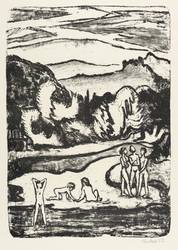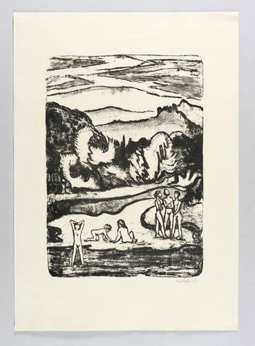 Erich Heckel (1883 Döbeln - 1970 Radolfzell am Bodensee). Deutscher Maler, Grafiker und Bildhauer. Einer der bedeutendsten Vertreter des Expressionismus. Abgebrochenes Architekturstudium in Dresden. Autodidaktische Weiterbildung zum Maler und Grafiker. 1905 mit Ernst Ludwig Kirchner, Karl Schmidt-Rottluff und Fritz Bleyl Gründung der Künstlergruppe "Die Brücke" in Dresden. 1907-10 Aufenthalt mit Schmidt-Rottluff in Dangast an der Nordsee. 1909 Italienreise. In Dresden Ateliergemeinschaft mit Kirchner. 1909-11 sommerliche Aufenthalte mit Kirchner, Pechstein, den Freundinnen und Modellen an den Moritzburger Teichen, bei denen viele Akte in freier Natur entstanden. 1911 Umzug mit seiner künftigen Frau Milda Frieda Georgi nach Berlin. Ausbildung zum Krankenpfleger zu Beginn des Ersten Weltkriegs. 1918 Gründungsmitglied des „Arbeitsrats für Kunst“. Später Mitglied der Ankaufskommisssion der Nationalgalerie Berlin. 1937 Ausstellungverbot. 729 Arbeiten wurden aus deutschen Museen beschlagnahmt und entfernt. 1944 Zerstörung des Ateliers und des Großteils der Werke bei einem Bombenangriff. Im selben Jahr Zuflucht bei Freunden in Hemmenhofen am Bodensee. 1949-55 Lehrauftrag an der Akademie der Bildenden Künste in Karlsruhe. 1955 Teilnehmer der documenta 1 in Kassel.