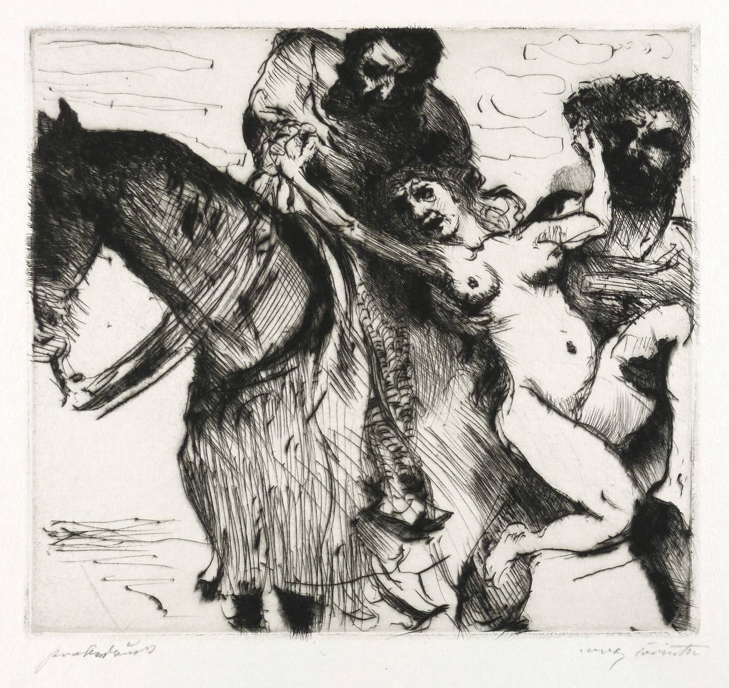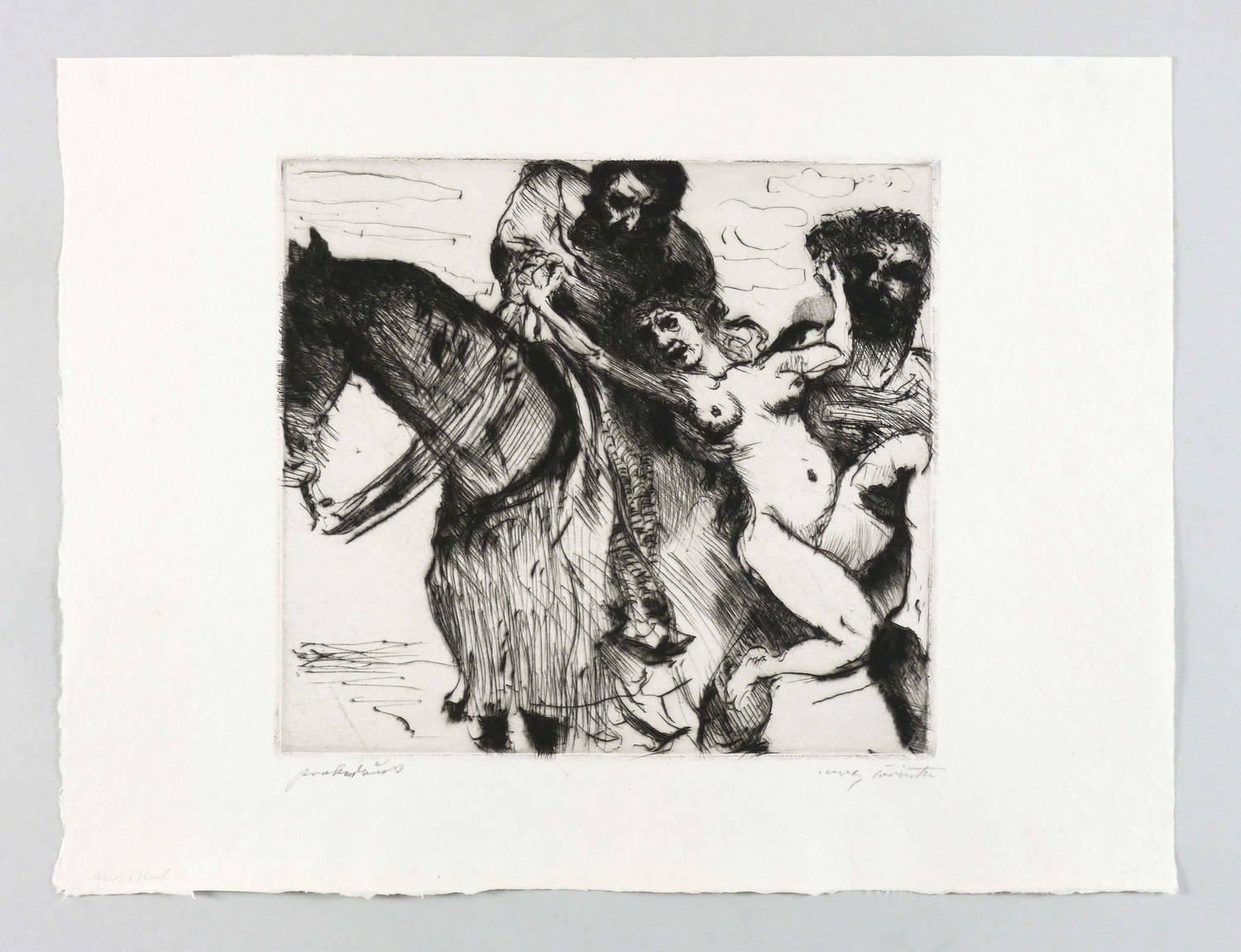1917. Radierung / Kaltnadel, in Schwarz, auf hellchamois Velin. – Originale Künstlergrafik, von Lovis Corinth. – Probedruck. – 21,7 x 23,8 cm (Darstellung / Platte), 31 x 41 cm (Blatt).