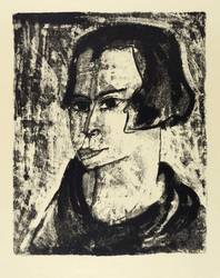 1922/1923. Lithografie / Kreide- & Pinsellithografie, gewischt & geschabt, in Schwarz, auf glattem gelbem Velin. – Originale Künstlergrafik, von Max Kaus. – Auflage Exemplar Nr. 28/50. – 44,6 x 35,6 cm (Darstellung / Druckbild), 60 x 44 cm (Blatt).