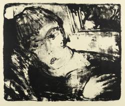 1922/1923. Lithografie / Kreide- & Pinsellithografie, gewischt & geschabt, in Schwarz, auf glattem gelbem Velin. – Originale Künstlergrafik, von Max Kaus. – Auflage Exemplar Nr. 28/50. – 38,2 x 45,5 cm (Darstellung / Druckbild), 44 x 60 cm (Blatt).