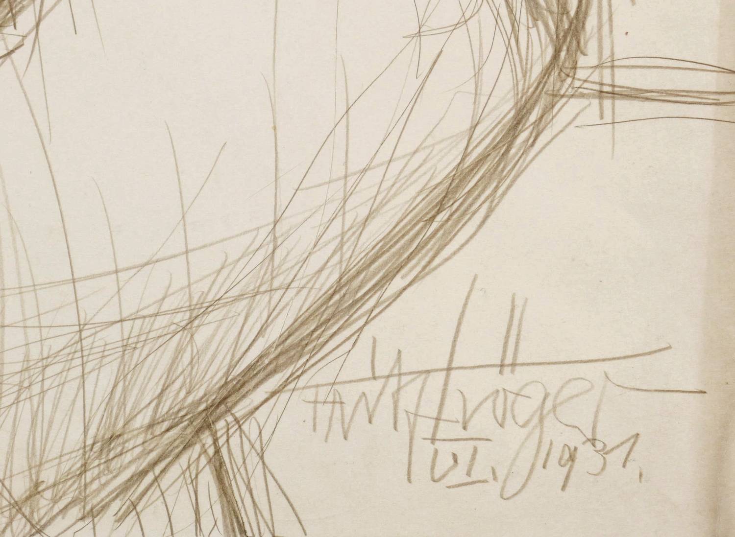 1931. Zeichnung / Graphitzeichnung, auf glattem hellgelbem Karton. – Originale Künstlergrafik, von Fritz Tröger. – Unikat. – 64,4 x 50,1 cm (Darstellung / Blatt).
