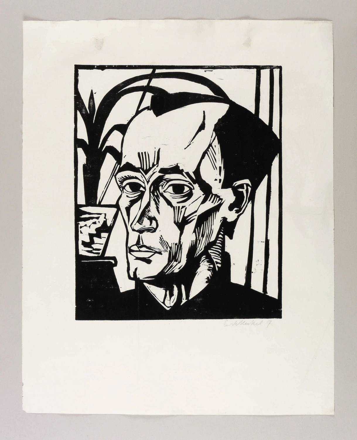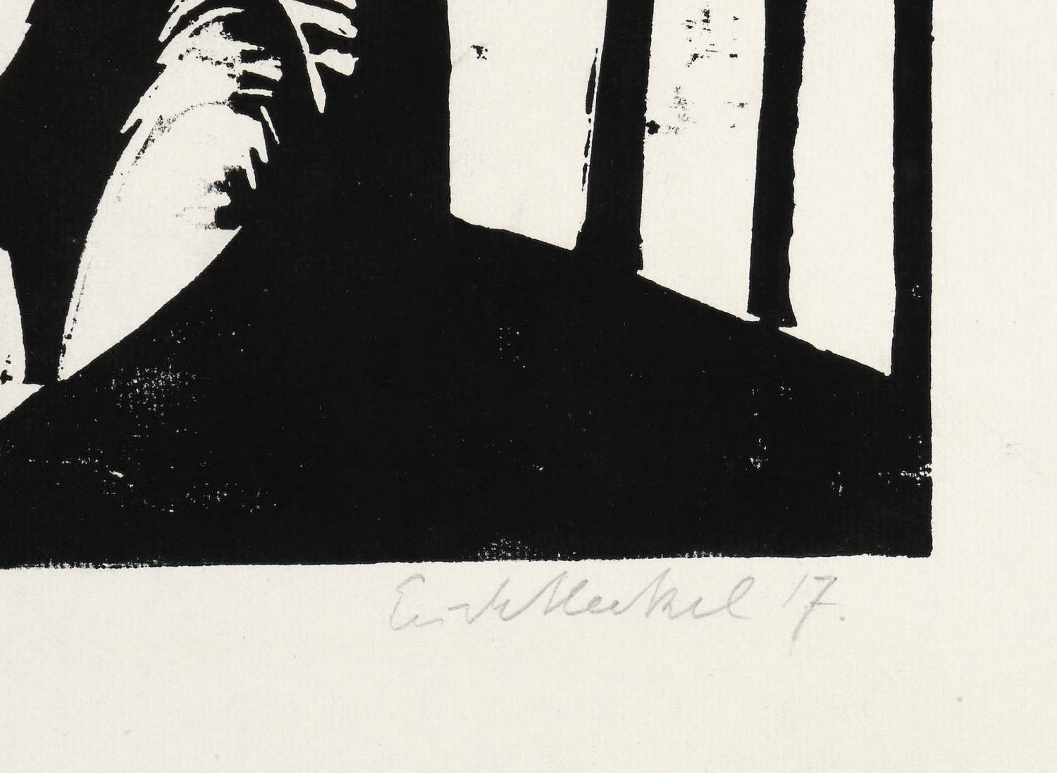 1917. Holzschnitt, in Schwarz, auf rauem hellchamois Bütten. – Originale Künstlergrafik, von Erich Heckel. – 36,6 x 30,0 cm (Darstellung / Druckstock), 57 x 45 cm (Blatt).