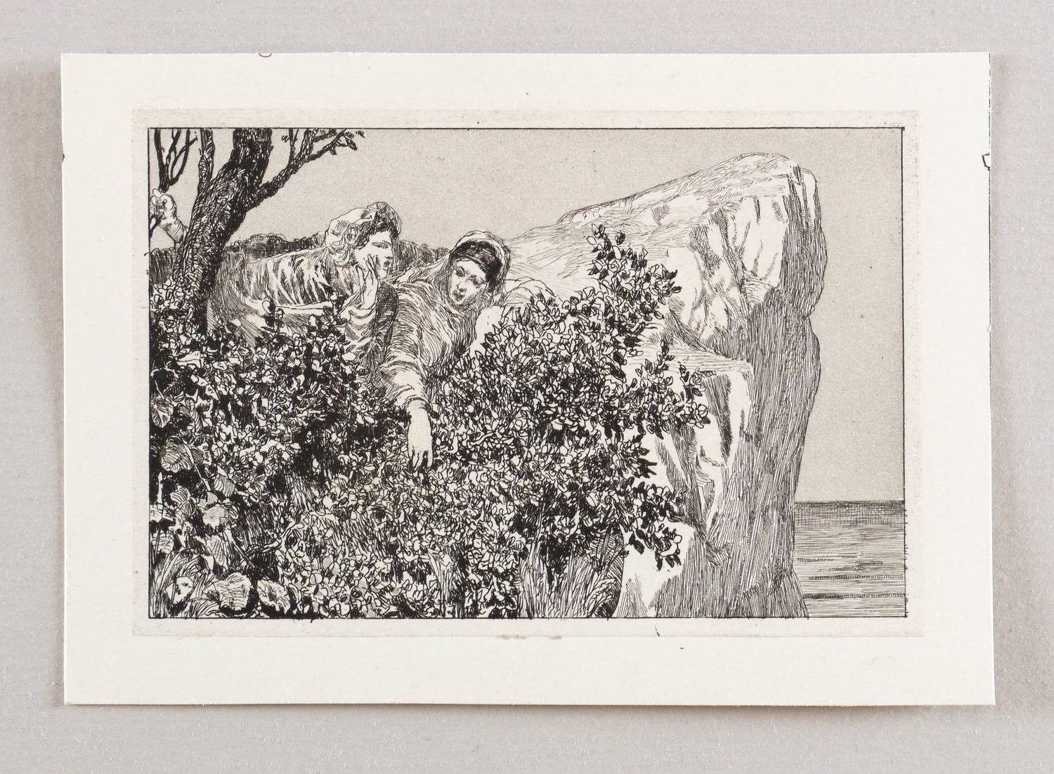 1880. Radierung / Strichätzung, auf gewalztem China, auf Kupferdruckkarton. – Von Max Klinger. – 6,5 x 10,0 cm (Darstellung / Einfassungslinie), 9 x 13 cm (Blatt).