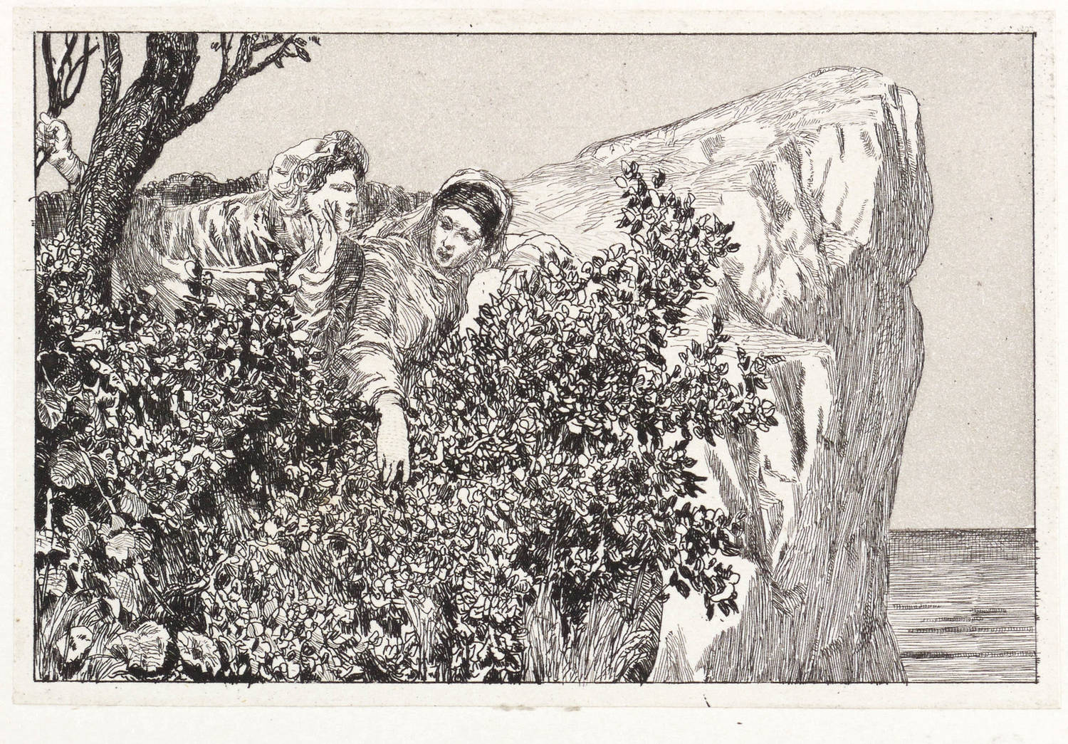 Klinger, Max. – Amor und Psyche (Opus V). – Blatt XIV. – „Die Schwestern Psyche rufend”.