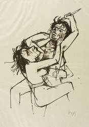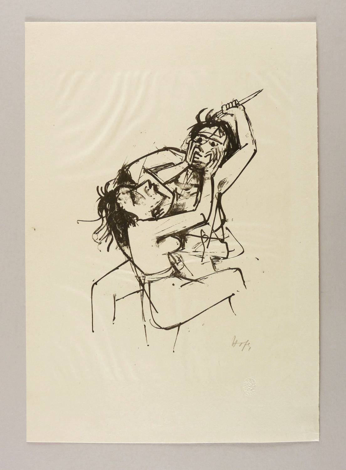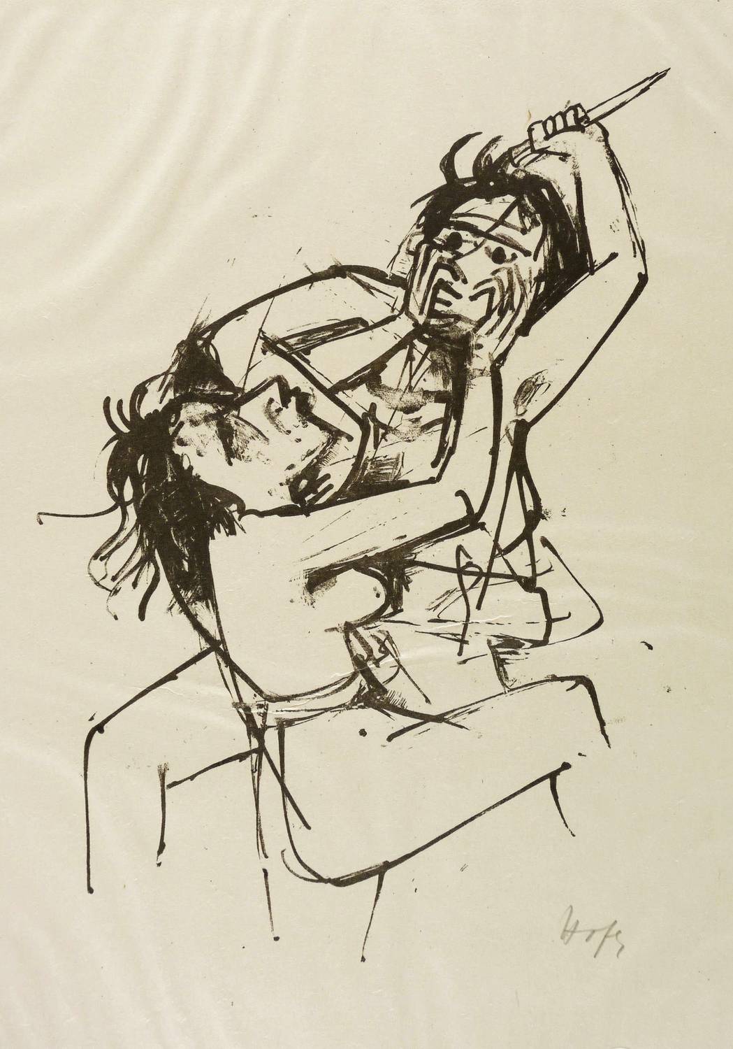 1923. Lithografie / Pinsellithografie, in Schwarz, auf feinem gelbem Bütten. – Originale Künstlergrafik, von Karl Hofer. – Auflage 120 Exemplare. – 26,6 x 19,0 cm (Darstellung / Druckbild), 43 x 30 cm (Blatt).