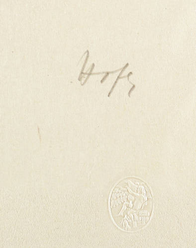 Rathenau 181. – Rechts unten in Bleistift signiert: ″Hofer″. Trockenstempel der Marées- Gesellschaft. – Breitrandiges Exemplar. Im Bereich des Steins herstellungsbedingt leicht gewellt. Guter Zustand.