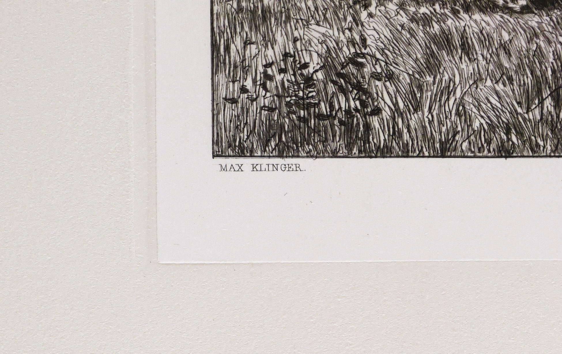 1881. Radierung / Strichätzung & Aquatinta, in Schwarz, auf gewalztem China, auf Kupferdruckkarton. – Originale Künstlergrafik, von Max Klinger. – 16,4 x 37,7 cm (Darstellung), 21,0 x 41,4 cm (Platte), 45 x 63 cm (Blatt).