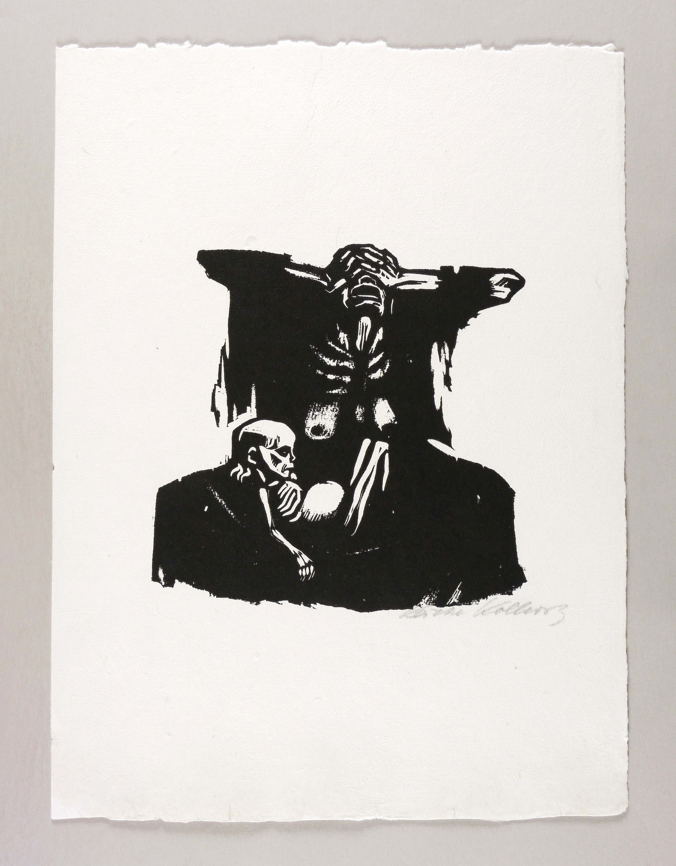 1922. Holzschnitt, in Schwarz, auf dickem weichem rauem Bütten. – Originale Künstlergrafik, von Käthe Kollwitz. – 22,3 x 22,9 cm (Darstellung / Druckstock), 48 x 35 cm (Blatt).