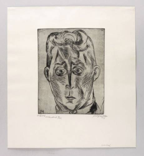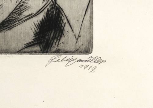Söhn 199 b. – Rechts unten in Bleistift signiert und datiert: ″Felixmüller 1919.″ Links eigenhändige Technik- und Auflagenbezeichnung: ″Stahlstich / Vorzugsdruck 7/25″. Am unteren Blattrand rechts ebenfalls eigenhändig weiter bezeichnet: ″Hans Koch″. – Originalrandiges unbeschnittenes Exemplar. Tadellos erhalten. Rückseitig im oberen Blattrand zwei unscheinbare Montagereste. Sehr guter Zustand.