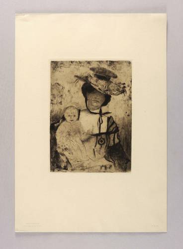 Schwarz 25 II (von II). – Aus: Deutscher Kunstverein zu Berlin. Vereinsgabe 1904-1905 (Berlin: Deutscher Kunstverein 1905). – Nicht handsigniert. In der Platte links oben Monogramm und Jahr: ″LC 1905″. Im unteren Blattrand typografisch in Hellblau bezeichnet: ″LOUIS CORINTH [sic!] / MUTTER UND KIND // D.K.V.″ Rückseitig Sammlernotizen in Bleistift. – Aus der seltenen impressionistischen Mappenedition ″Deutscher Kunstverein zu Berlin″ von 1904/05. - Provenienz: Sammlung Dr. Heinrich Becker, Bielefeld. – Originalrandiges Exemplar. Leichte Montagespuren in den oberen Blattecken. Schön erhalten. Sehr guter Zustand.