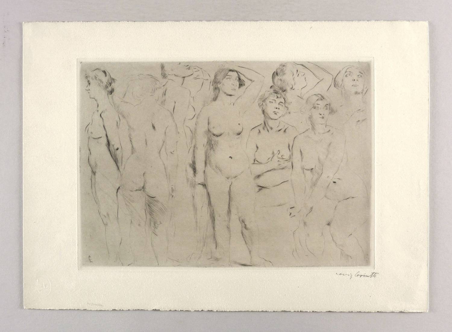1910. Radierung / Kaltnadel, in Schwarz, mit Plattenton, auf weichem chamois Velin. – Originale Künstlergrafik, von Lovis Corinth. – Auflage 40 Exemplare. – 25,0 x 35,0 cm (Platte), 34 x 48 cm (Blatt), 34,2 x 24,2 cm (Darstellung / Druckbild).
