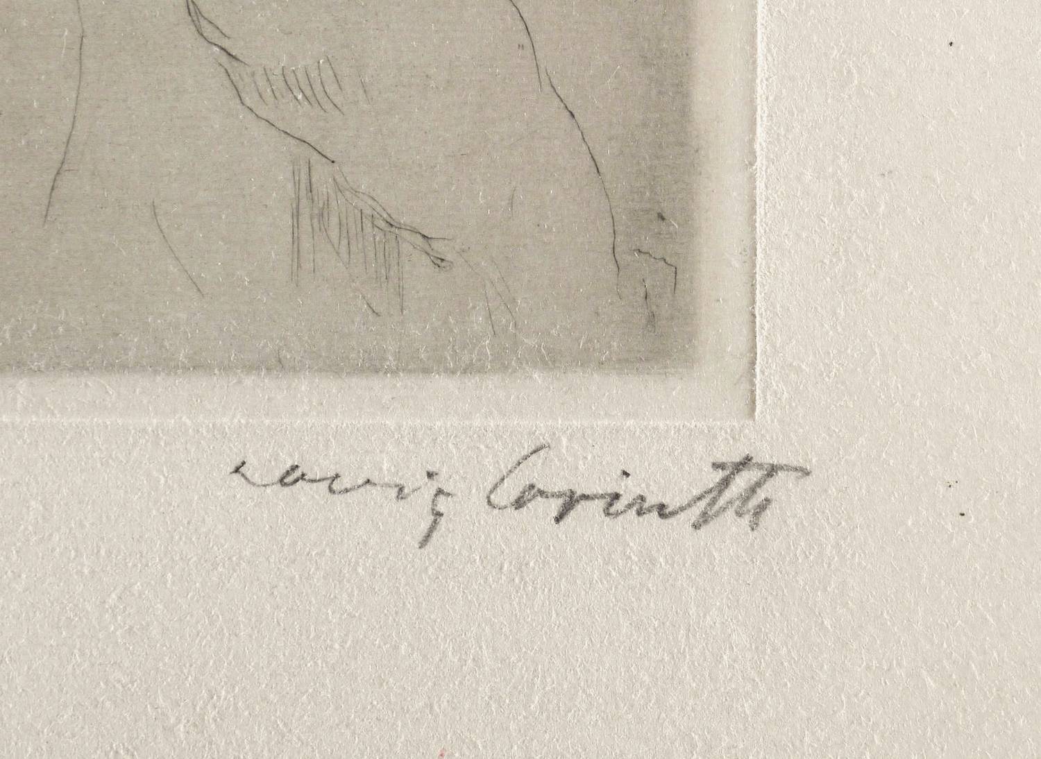 Schwarz 43 II (von II). – Rechts unten in Bleistift signiert: ″Lovis Corinth″. In der Platte links unten ligiertes Monogramm: ″CL″. Linke untere Blattecke mit Sammler- Blindstempel. – Exemplar aus der 1910 erschienenen kleinen Auflage von nur 40 Abzügen. - Provenienz: Sammlung Dr. Heinrich Becker, Bielefeld. – Gutes breitrandiges Exemplar. Minimale Lagerspuren. Guter Erhaltungszustand.
