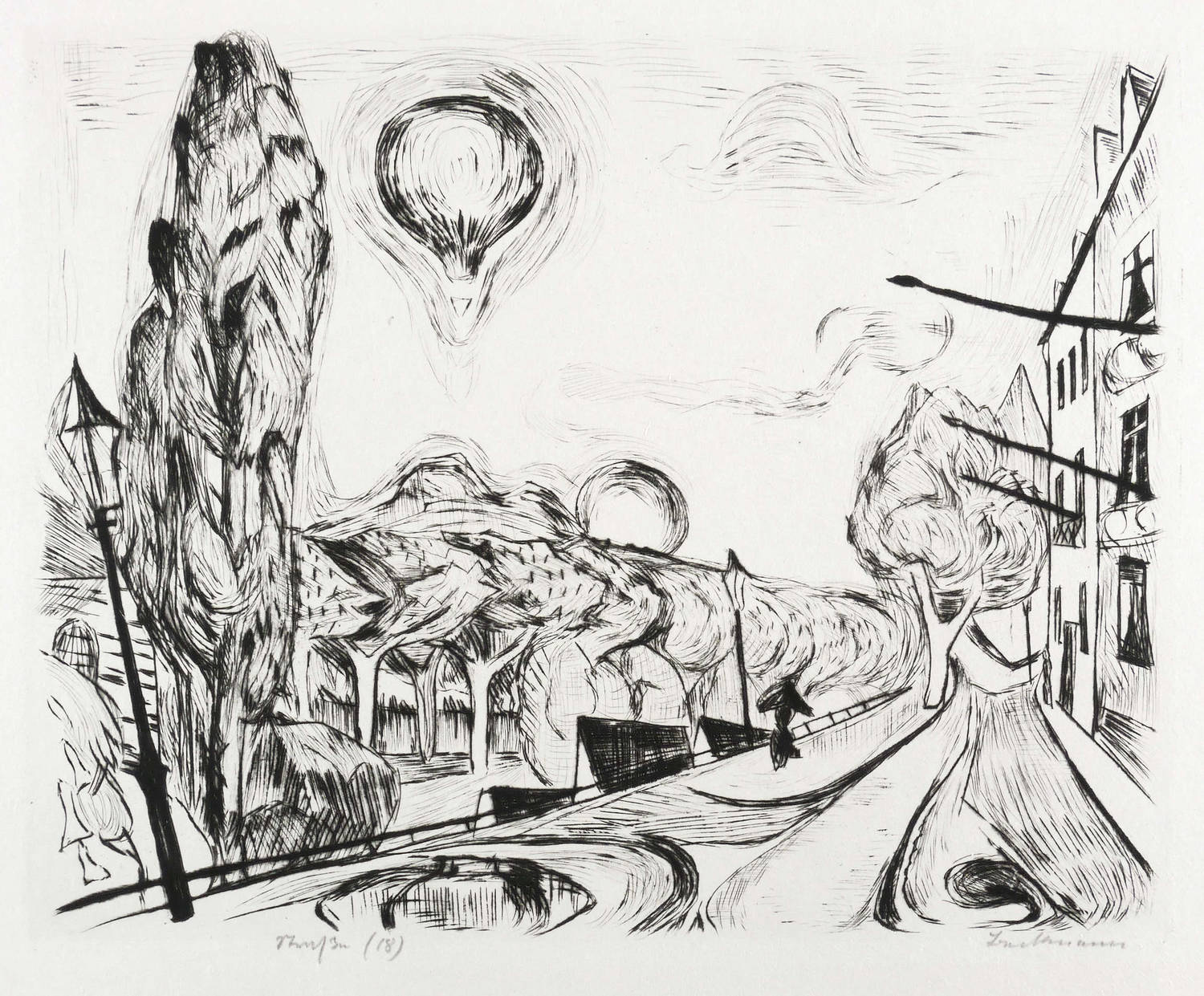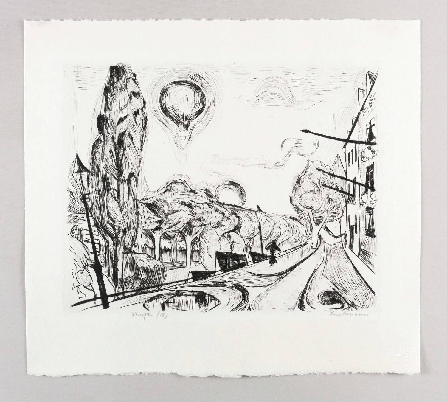 Beckmann, Max. – „Landschaft mit Ballon (Straße in Frankfurt)”.