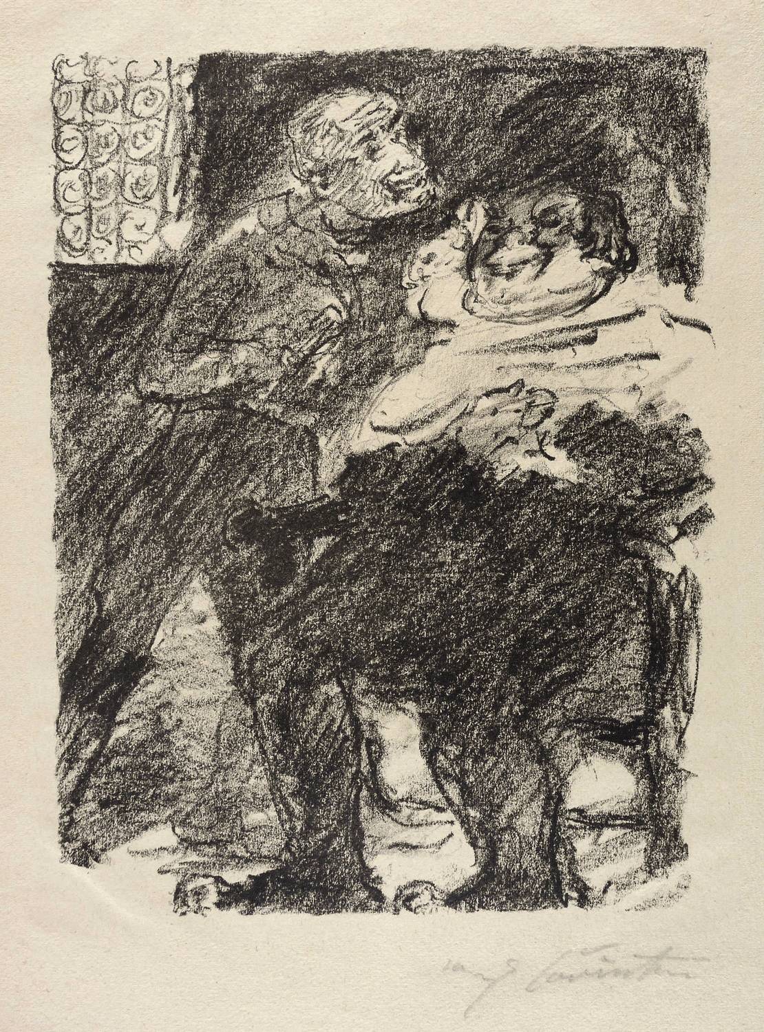 1920. Lithografie / Kreidelithografie, in Schwarz, auf rauem gelbem Velin. – Originale Künstlergrafik, von Lovis Corinth. – Auflage 40 Exemplare. – 34,8 x 26,4 cm (Stein), 50 x 38 cm (Blatt), 32,5 x 25,0 cm (Darstellung / Druckbild).