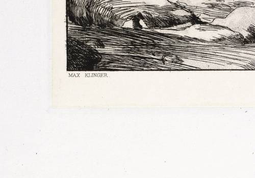 Singer 57 IV (von IV). – In der Platte links unten gestochene Signatur: ″MAX KLINGER″. Rechts unten Blatt-Nr.: ″VI″. – Blatt 6 aus dem Radier-Zyklus ″Intermezzi Opus IV″. – Schönes originalrandiges Exemplar. Ohne jeden Mangel. Sehr guter Zustand.