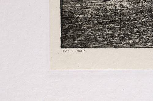 Singer 53 III. – In der Platte links unten gestochene Signatur: ″MAX KLINGER″. Rechts nummeriert: ″II″. – Exzellente Druckhaltung mit satten Kontrasten und feinsten Schärfen. Ausgezeichnetes Blatt. – Originalrandiges Exemplar. Ohne Mängel. Sehr guter Zustand